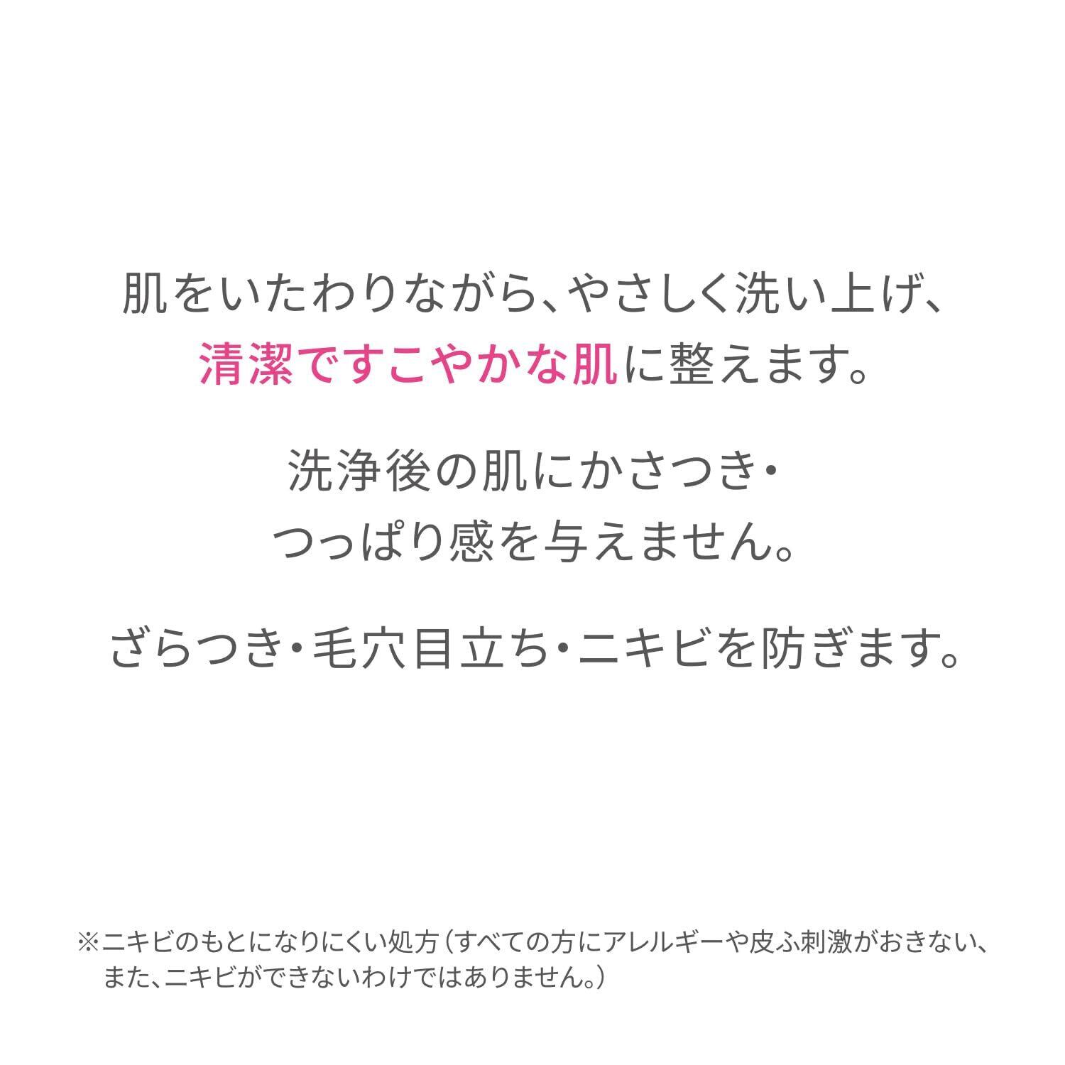 肌をいたわりながらやさしく洗う、顔・ボディー用石けん。肌をいたわりながら不要な皮脂や汚れをやさしく取り去り、清潔ですこやかな肌に整えます。洗浄後の肌にかさつき・つっぱり感を与えません。ざらつき・毛穴の目立ち・ニキビを防ぎます。顔&ボディー用ソープです。