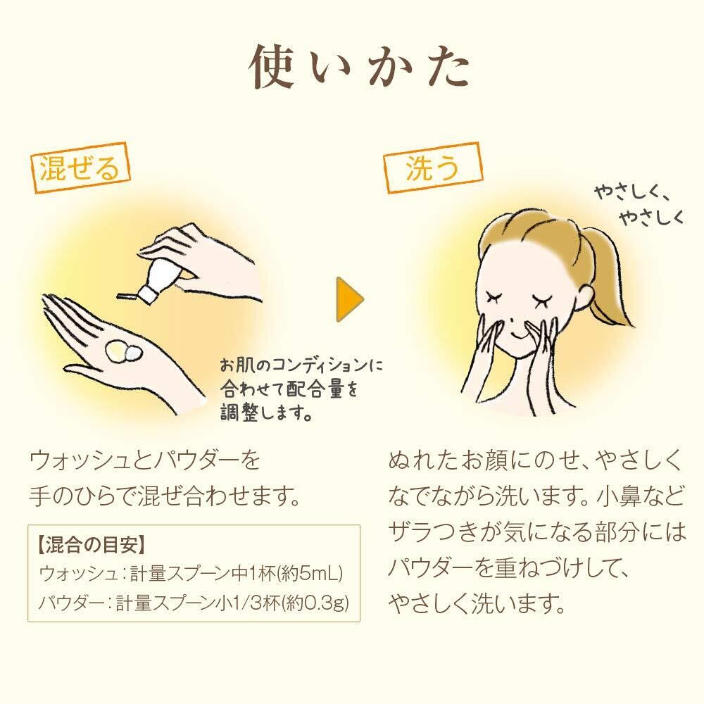 季節やお肌の状態、また、乾燥しやすかったり汚れがたまりやすいなど、使用する部位によって一緒に使うパウダーの量を増減させて、お好みの洗浄力に調節できます。