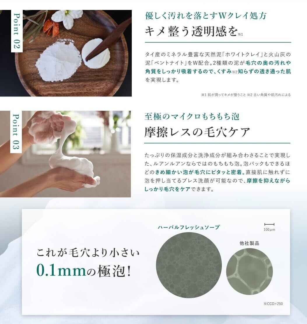 【こだわりの濃密泡】もちもちふわふわのきめ細かい泡が、毛穴の奥底に潜む汚れにアプローチ。 毛穴より小さい極小の0.1mmの泡が毛穴の奥まで入り込み透明感を引き出します。 ソフトクリームのような柔らかい濃密あわは泡パックにもおすすめ。 少量でもしっかりしたもこもこ泡ができるのでコスパも◎