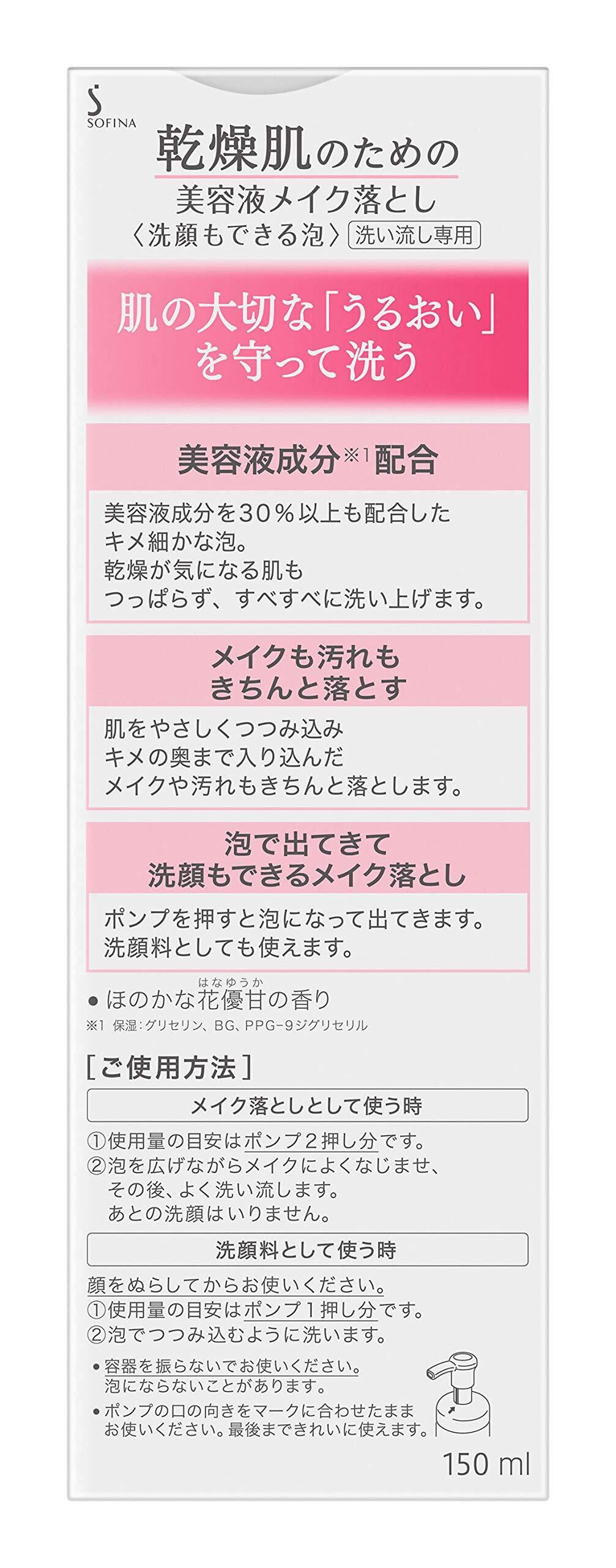 ソフィーナ 乾燥肌のための美容液メイク落とし 洗顔もできる泡 150ml