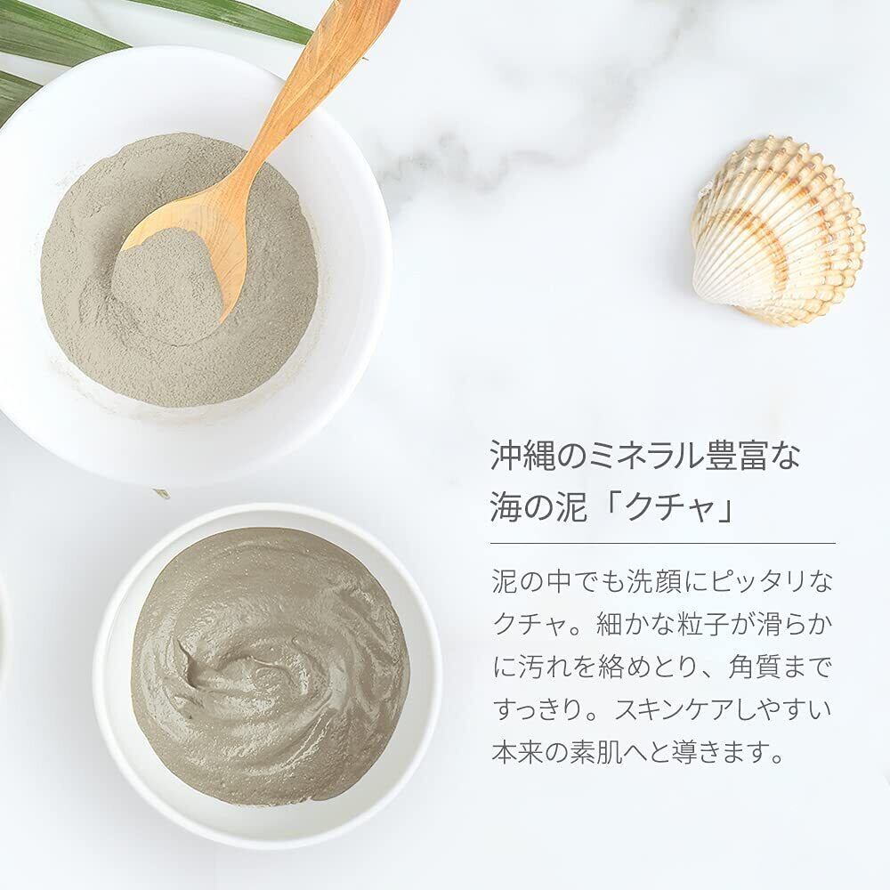 海水の倍以上ものミネラルを豊富に含み、自然の吸着機能をもつ沖縄産の海泥「クチャ」を最大濃度に配合した「濃密泡洗顔」