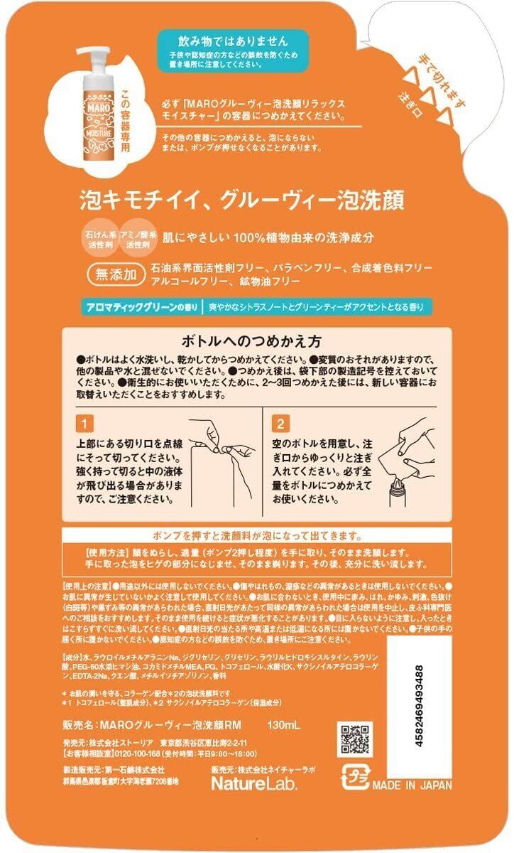 【詰替え130ml×8袋セット】MARO/マーロ 洗顔料 泡タイプ グルーヴィー リラックスモイスチャー