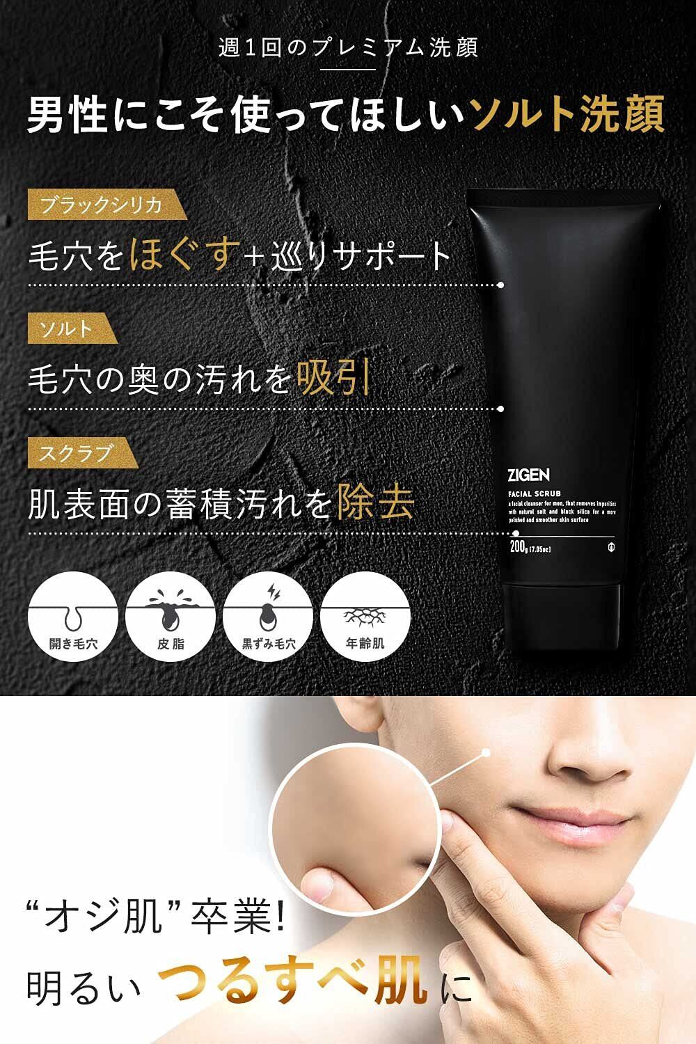 ZIGEN メンズ ソルトスクラブ洗顔 [ 毛穴の黒ずみ 角質ケア ] 週1回のスペシャルケア 塩洗顔 男性用 200g(約5か月分)