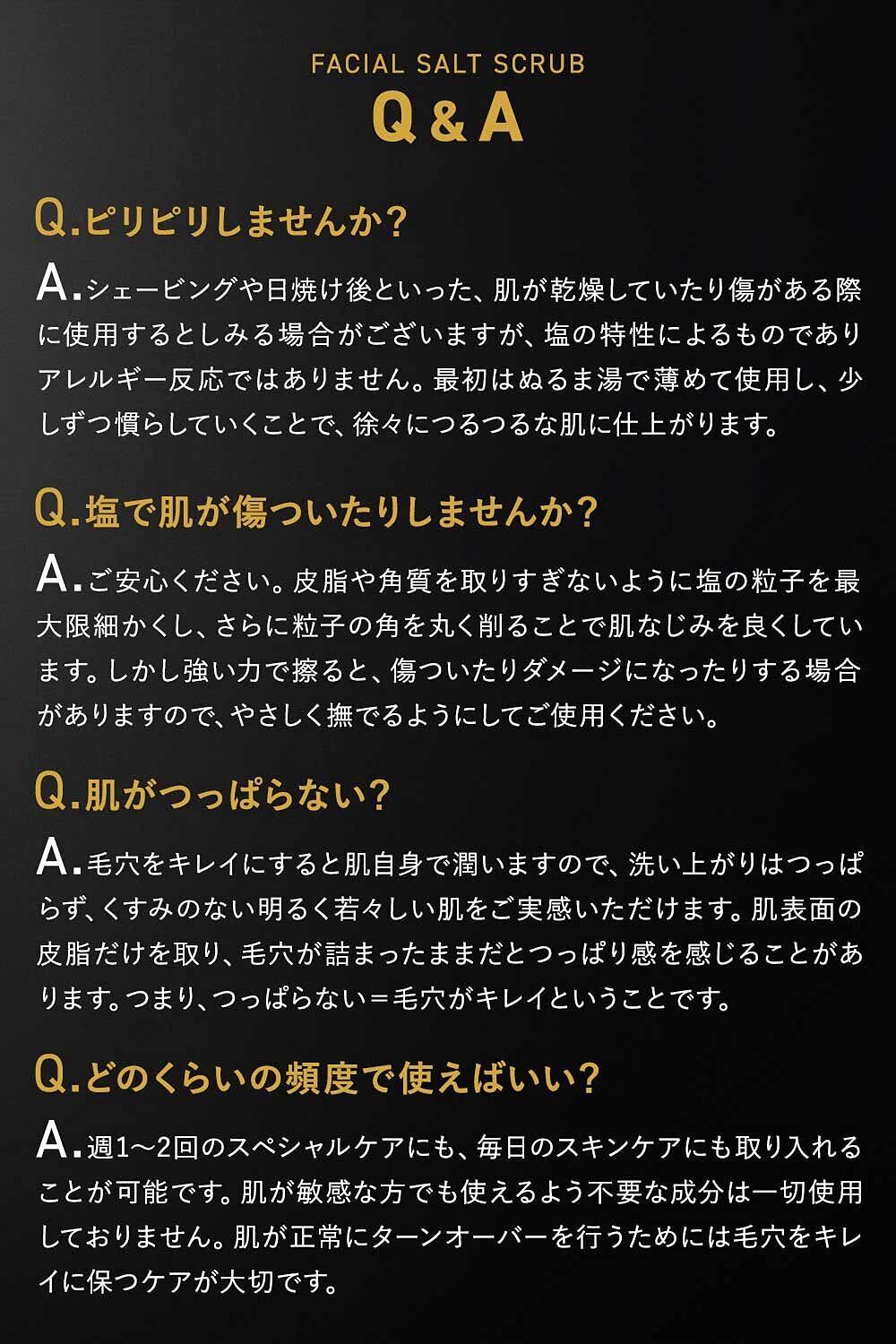 天然鉱石ブラックシリカが毛穴を温めやわらかくほぐし、ミネラル豊富な天然塩が、塩の浸透圧の力で毛穴の奥から汚れを引き出します。週に1~2回にスペシャルケアとしてお使いください。
