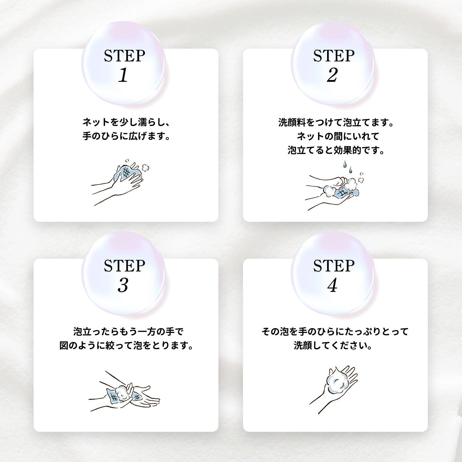 【植物由来のやさしい洗顔フォーム】マテラの泡立てネットは洗顔と相性よく作られているため、セットで使ってください.