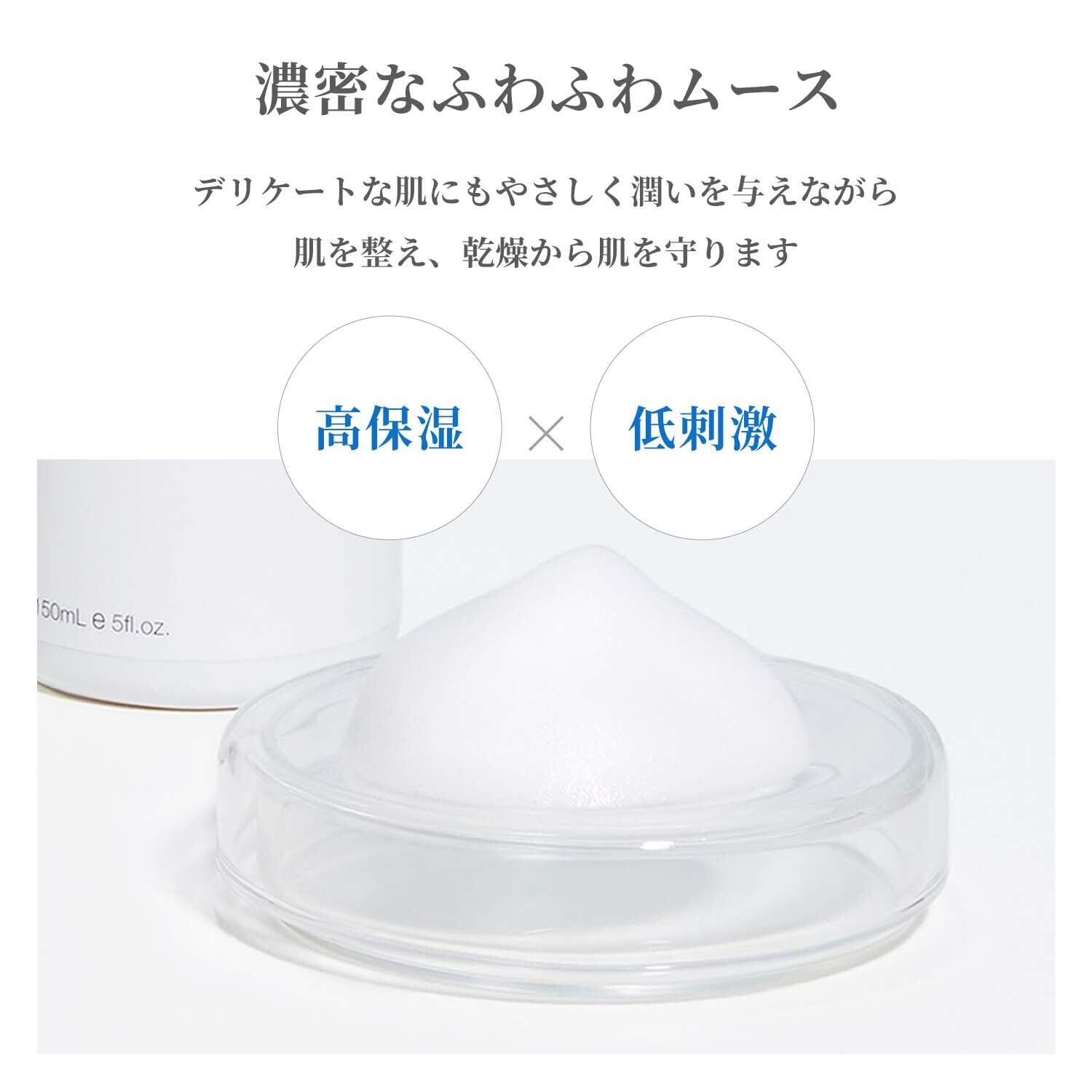 【濃密なふわふわムース】敏感なお肌にもやさしい処方です。特に乾燥している肌やしっかり保湿が必要な方におすすめ。