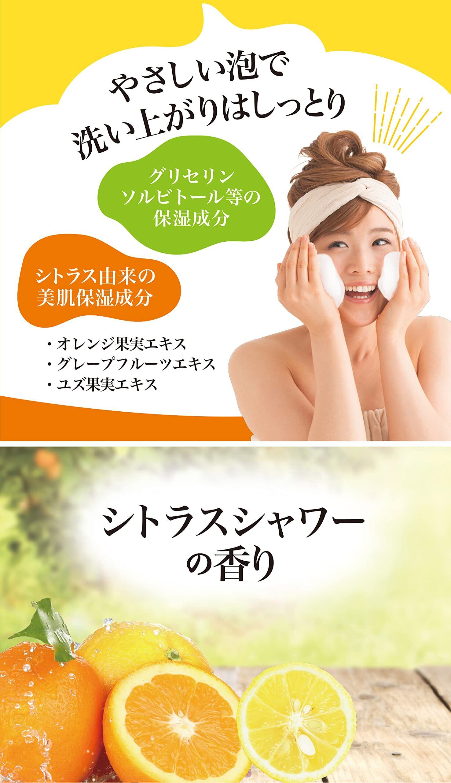 【3種のシトラス果実由来の保湿成分配合】グリセリン、ソルビトールといった保湿効果の高い成分と、シトラスフルーツエッセンスを配合することで洗い上がりのしっとり感を実現します。心地よいシャワーシトラスの香り。