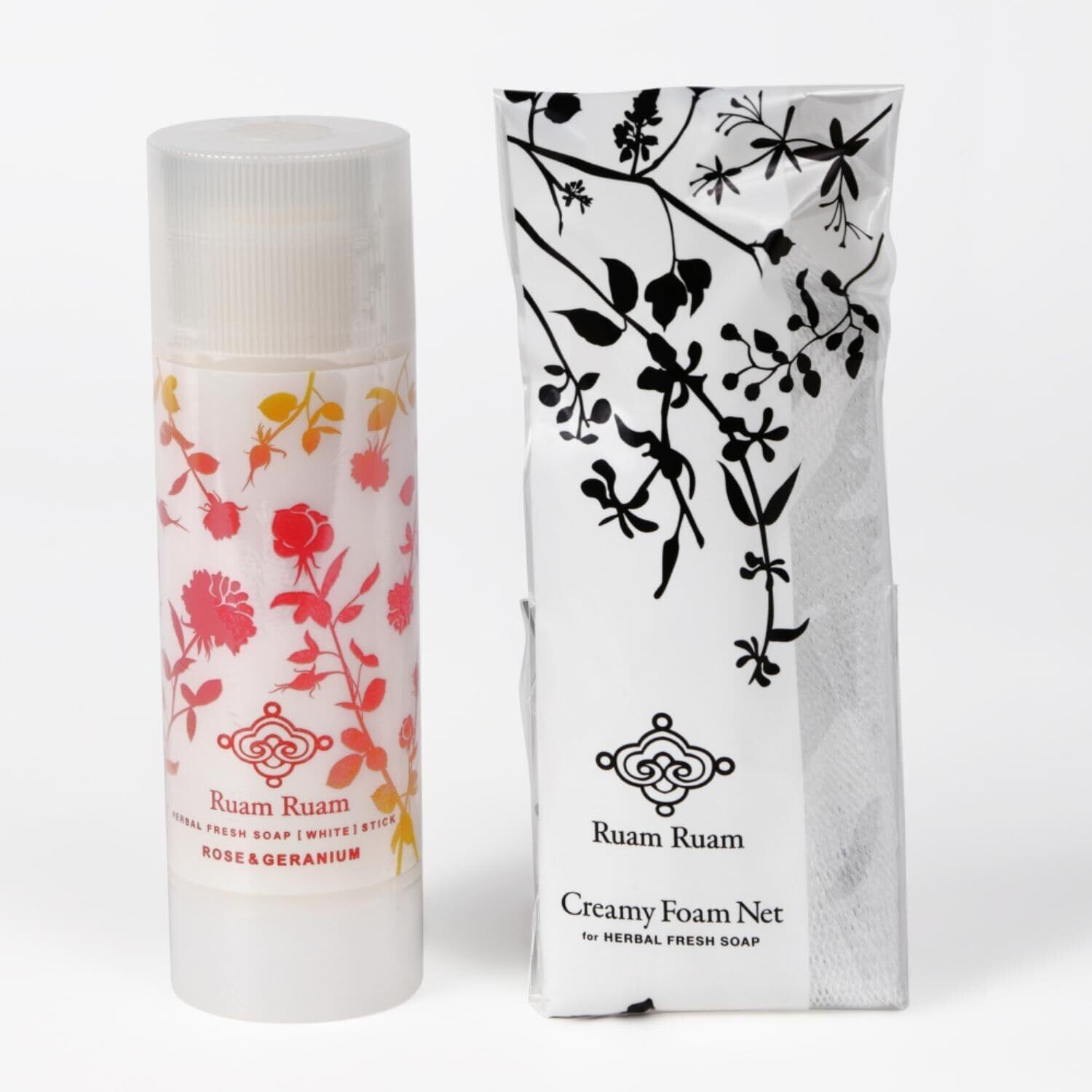 生せっけん【不織布ギフトラッピング】ルアンルアン(RuamRuam) 洗顔石鹸 (ローズ)(90g) スティック洗顔 & 泡立てネット 落としたくない気持ちいい泡 濃密泡 クレイ 毛穴ケア くすみ ハーブ エイジングケア 無添加 | 総合問屋 TOKYO中央商事