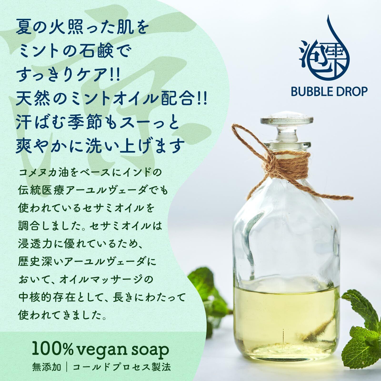 洗顔石鹸 ミント×クマイザサ葉 パームオイル不使用 ヴィーガン[無添加 コールドプロセス製法] BUBBLE DROP (悠久の生石鹸 ミント 涼)100g