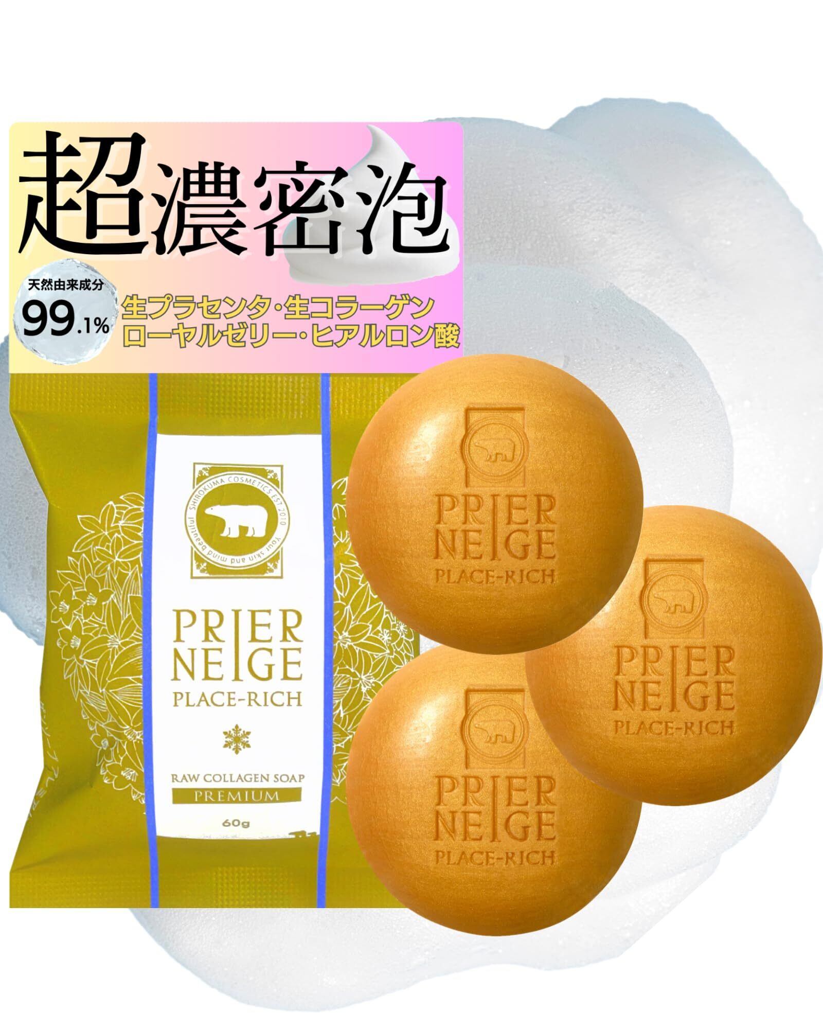 プリエネージュ 洗顔石鹸 60g 3個 洗顔 スキンケア コラーゲン ヒアルロン酸 プラセンタ 保湿 洗顔せっけん 朝夜兼用