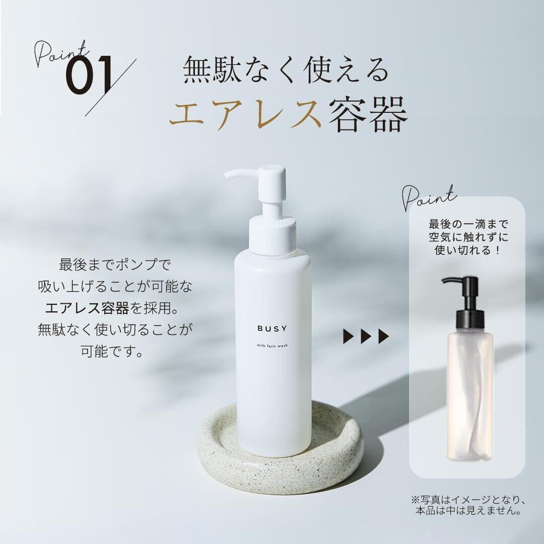 BUSY ビジー ミルク フェイス ウォッシュ 泡立て不要 洗顔 拭き取り洗顔 拭き取り洗い流し両用 時短スキンケア ミルク洗顔 基礎化粧品 時短 エアレス容器 ポンプ式 2way洗顔 スキンケア150mL
