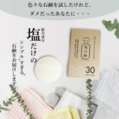 海から生まれた塩せっけん。成分:「石けん素地(植物性)」+「海塩」のみ。