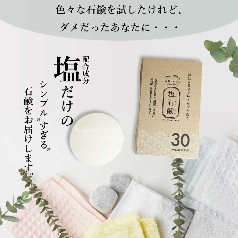 【無添加洗顔石鹸】 塩せっけん 塩石鹸 90g ミネラル洗顔 無添加 固形石鹸 敏感肌 低刺激 溶けない 化粧石鹸 洗顔 髪 身体にも使える 環境に優しい 赤ちゃんにも使える 石油系界面活性剤フリー 専用泡立てネット付き 約3ヶ月分 日本製