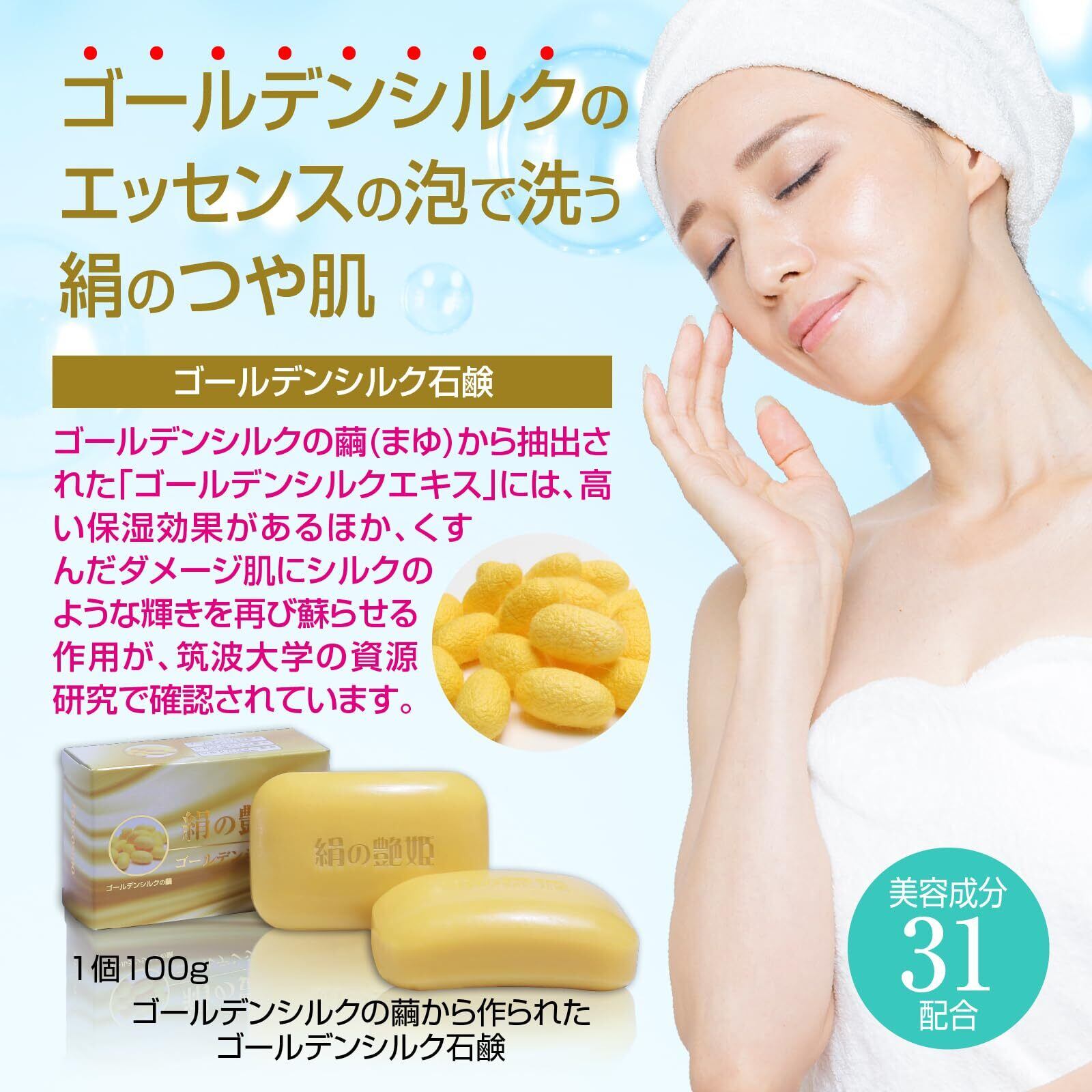 【2個で1個の価格 6/19まで】シルク 洗顔 絹 固形 石鹸 洗顔 せっけん 石けん ボディーソープ 日本製 無添加『絹の艶姫 ゴールデンシルク石鹸 100g×2個で1個の価格』ゴールデンシルクのエキスの泡で洗う、絹のつや肌。