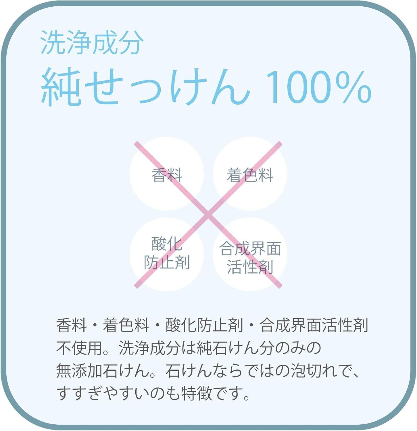 ●無添加石けんが生み出す、「シンプル」ながら「たしかな」ケア ●適度な洗浄力が、肌本来が持つバリアを守りながら、優しく洗い上げます。 ●肌に足りないものを与える、ではなく、肌本来の力を充分に発揮させることこそが、シャボン玉石けんが考えるスキンケアです。 ●シャボン玉石けんならではのこだわり処方 ・香料・着色料・酸化防止剤・合成界面活性剤 不使用。 ・釜炊き製法(ケン化法)でじっくり炊き上げて作りました。天然の保湿成分が含まれ洗い上りはしっとり。 ・オレイン酸が豊富に含まれ、保湿効果が高い特徴を持つオリーブオイルをカリ石けん素地の原料に使用。