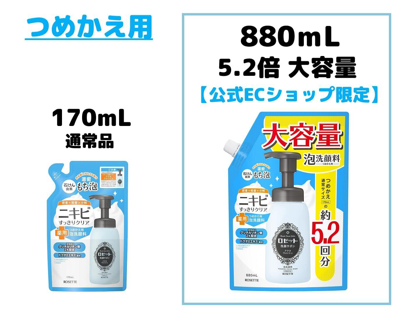 ロゼット洗顔サボン アクネウォッシュ つめかえ 880mL 【公式ショップ限定大容量5.2回分】 泡洗顔 薬用 ニキビ