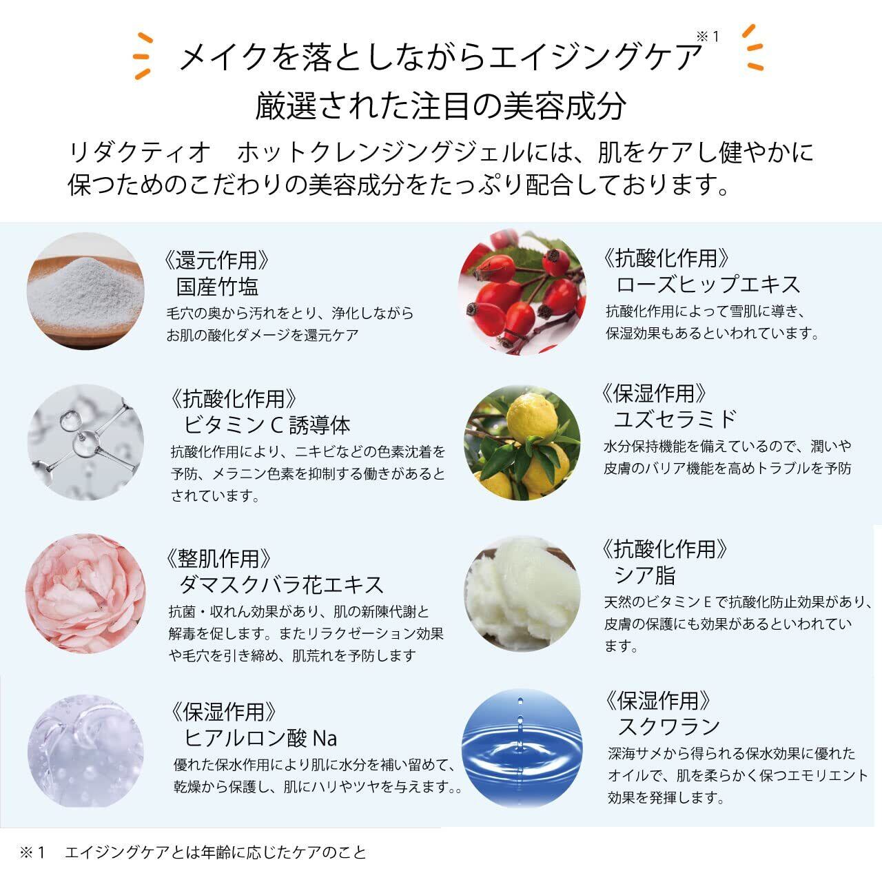 リダクティオ ホットクレンジングジェル 竹塩を配合 無添加 ホットクレンジングジェル エイジングケア 毛穴 黒ずみ 敏感肌 乾燥肌用 ビタミンC誘導体 ヒアルロン酸