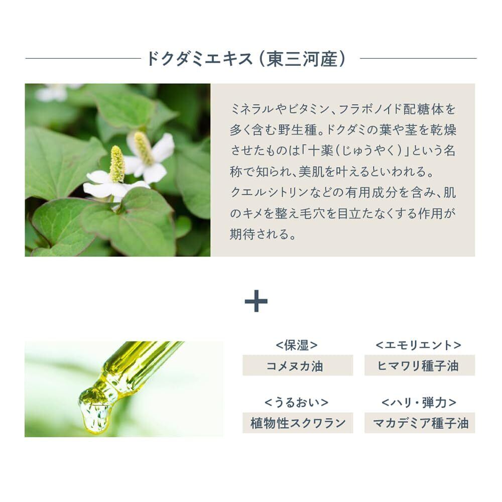 【バイオレチノール*×ドクダミエキス】従来のレチノールと同様のハリつやを与えるとされる植物由来の次世代レチノール、うるおいを与えキメを整える東三河産植物エキスなどを黄金比配合。(*コシロノセンダングサエキス、パーム油、シロバナワタ種子油、アマ種子油、トコフェロール|すべて整肌成分)