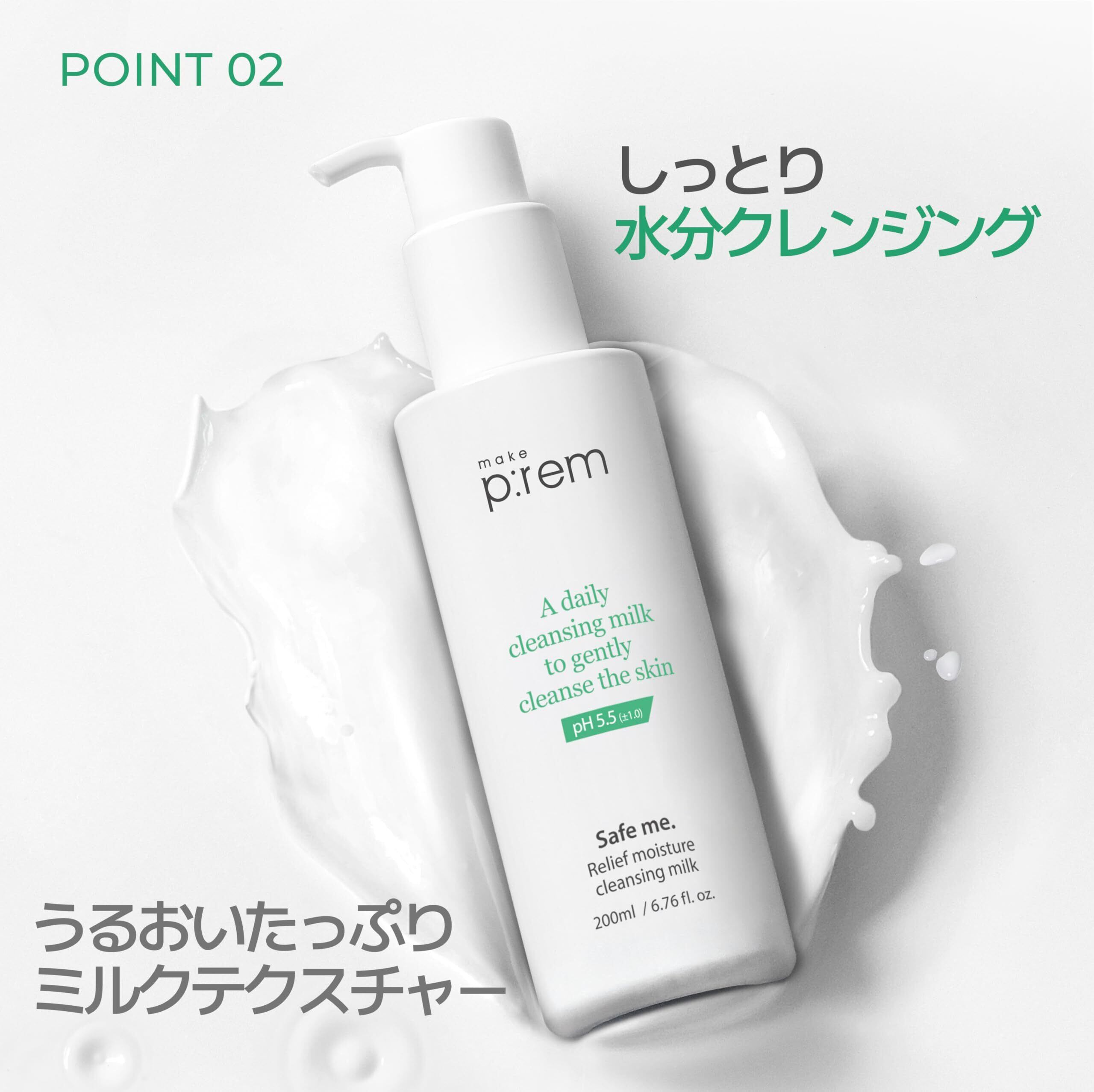 make prem メイクプレム セーフミーリリーフモイスチャークレンジングミルク 200ml メイク落とし 低刺激 保湿 大豆タンパク質配合 肌荒れケア 韓国