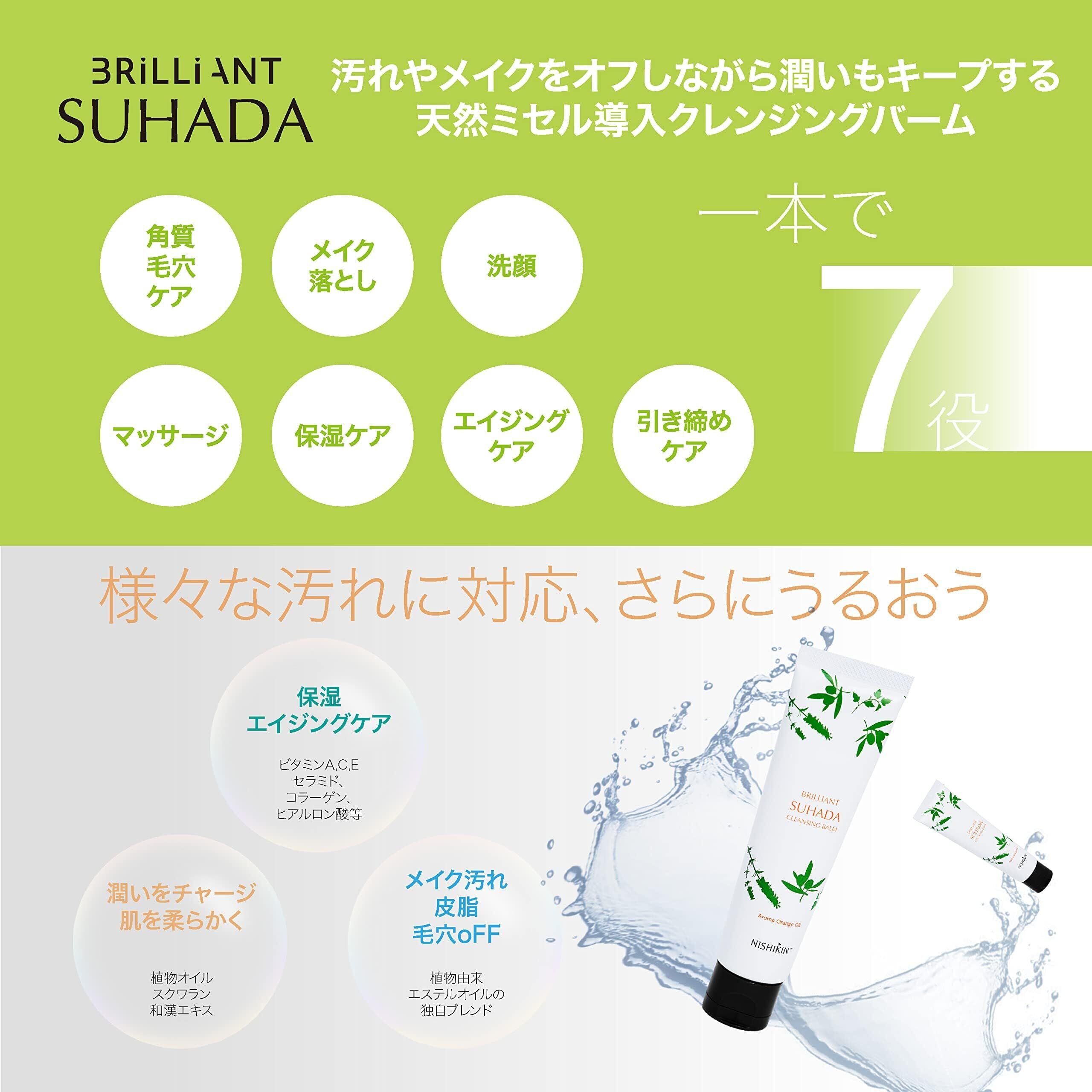 【W洗顔不要!・メイク落とし・高保湿・天然由来成分100%】NISHIKIN Brilliant Suhada ブリリアント スハダ ボタニカル クレンジングバーム(内容量:70g)