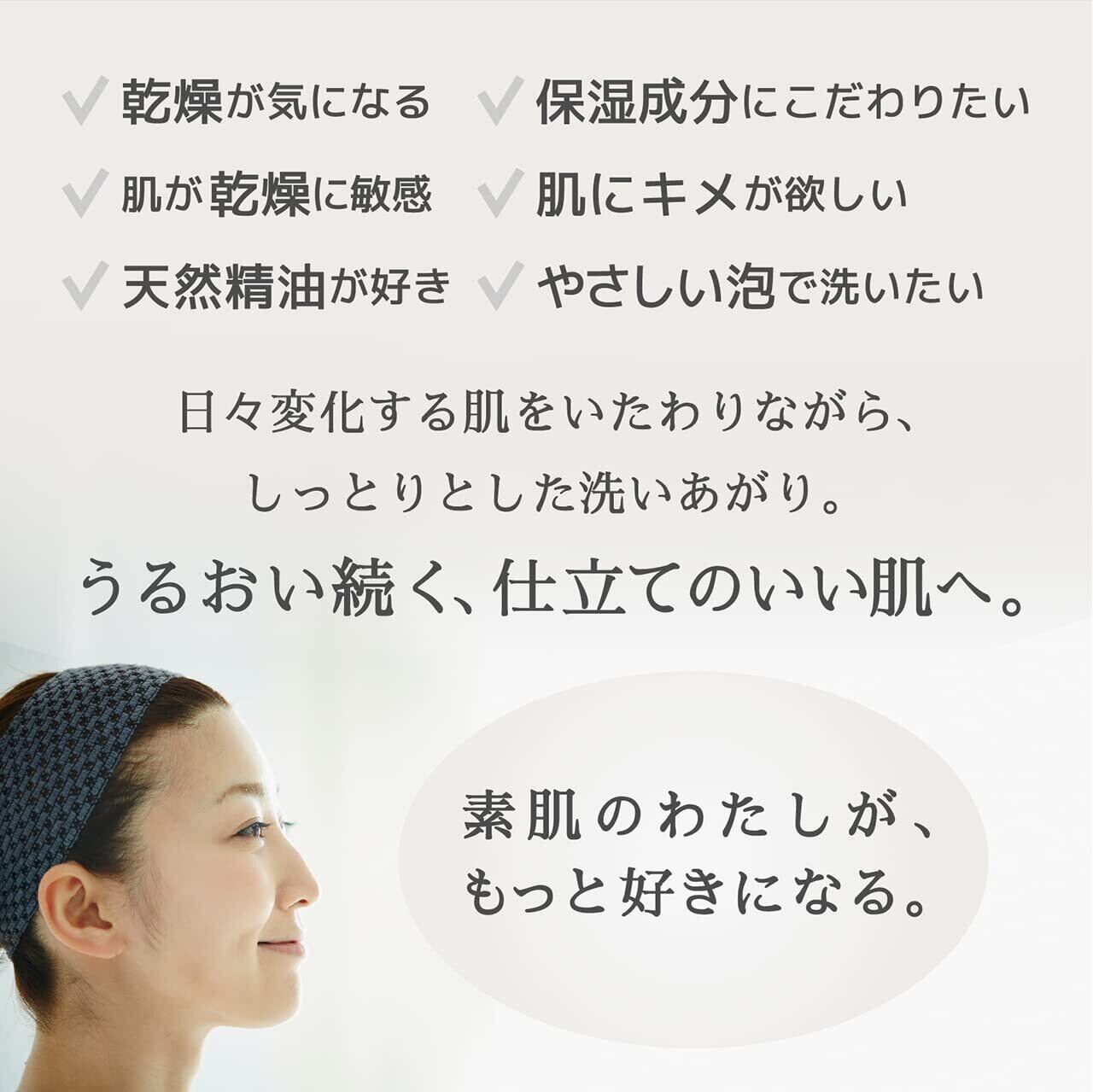 ●日々変化する大人の肌のために、洗うたびうるおう無添加スキンケアシリーズ。●8つの無添加:合成香料・着色料・鉱物油・シリコン・防腐剤・品質安定剤・アルコール(エタノール)・サルフェート不使用。●洗いあがりまでうるおいを守ってやさしく洗い、清潔でキメの整ったしっとり美肌に導きます。●敏感肌の方のご協力によるパッチテスト済み+アレルギーテスト済み。●天然精油100% ベルガモット&ラベンダーのやわらかな香り。●保湿成分65%以上(水を除く成分中)。●マツエクにもお使いいただけます。●W洗顔不要。●濡れた手や顔でもお使いいただけます。