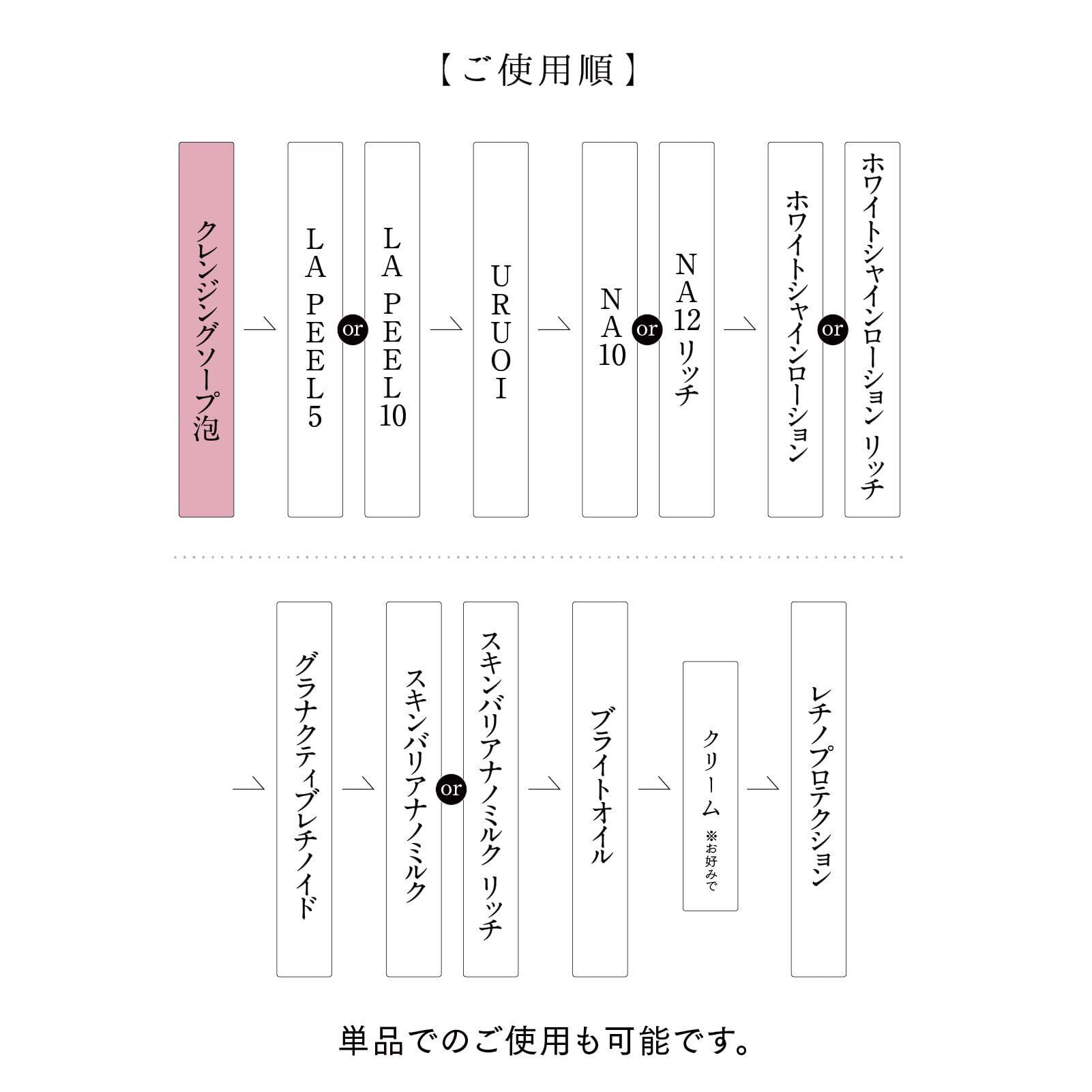 【ご使用方法】 顔を軽くぬらしてから、適量(6~8プッシュ)を手に取り泡をメイクになじませるようにして、やさしく洗顔してください。洗顔後は、水またはぬるま湯でよく洗い流してください。メイク落としと洗顔が一度でできます。 ※まつエクの方にもご使用いただけます。