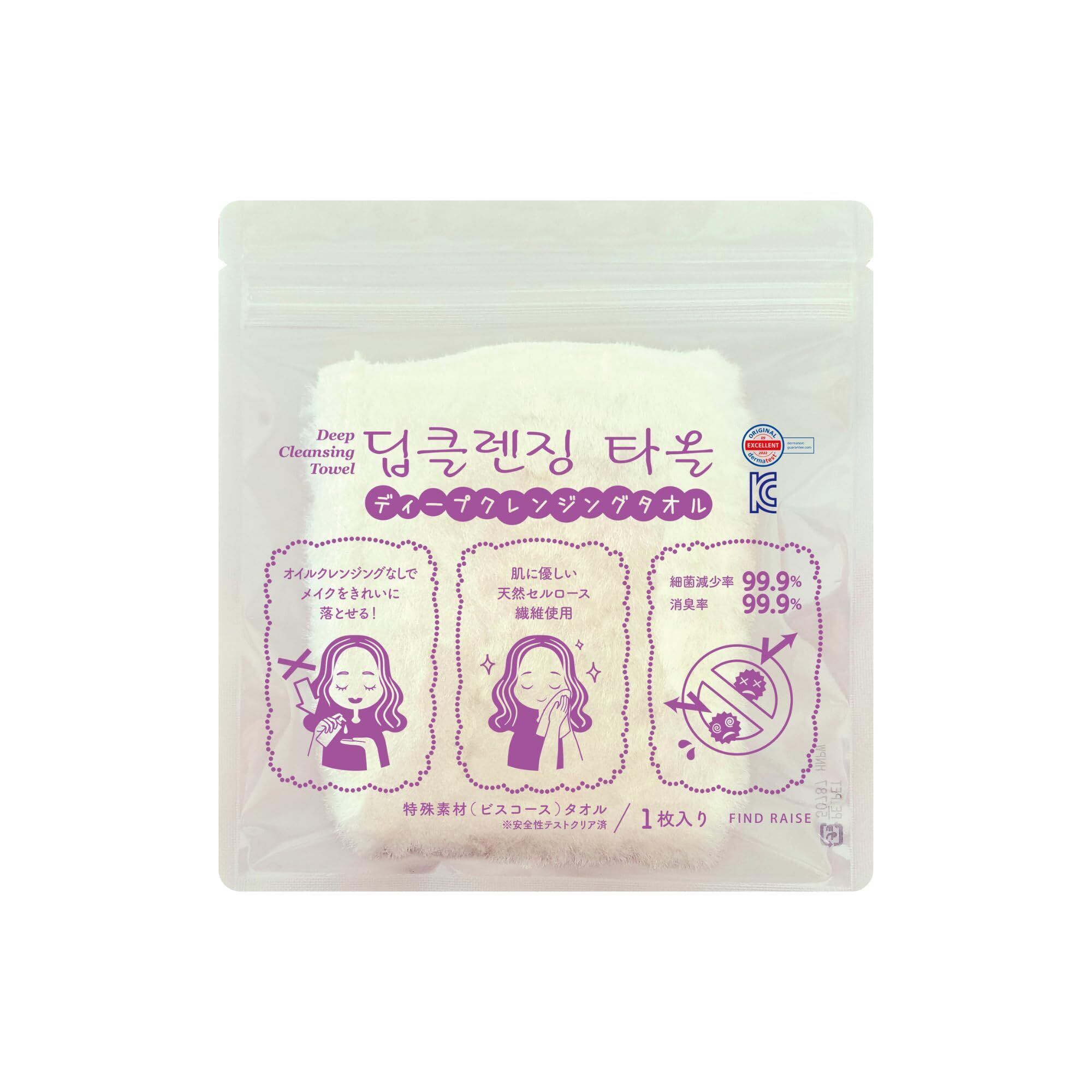 ファインドレイズ ディープ クレンジングタオル フェイスタオル 繰り返し使用可能 1枚入り ビスコースレーヨン使用 オイルクレンジング無しでメイクが落ちる 細菌減少率 消臭率 99.9%