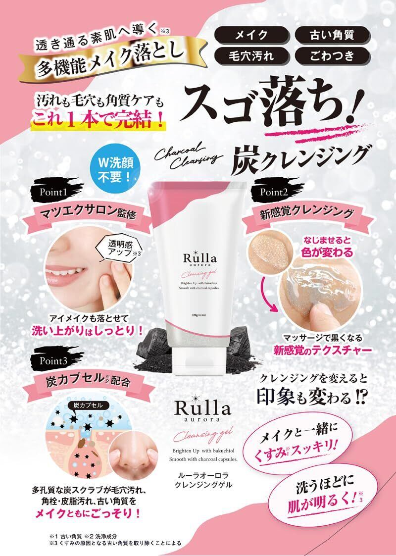 炭スクラブがお肌のザラつきと毛穴の汚れをメイクともにごっそり! また、お肌になじませるとスクラブが溶けて黒くなりビジュアル的にも楽しくご使用頂けます。