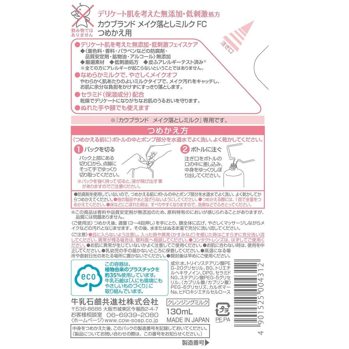カウブランド 無添加 メイク落とし ミルク つめかえ用 130ml×3個 130ミリリットル (x 3)
