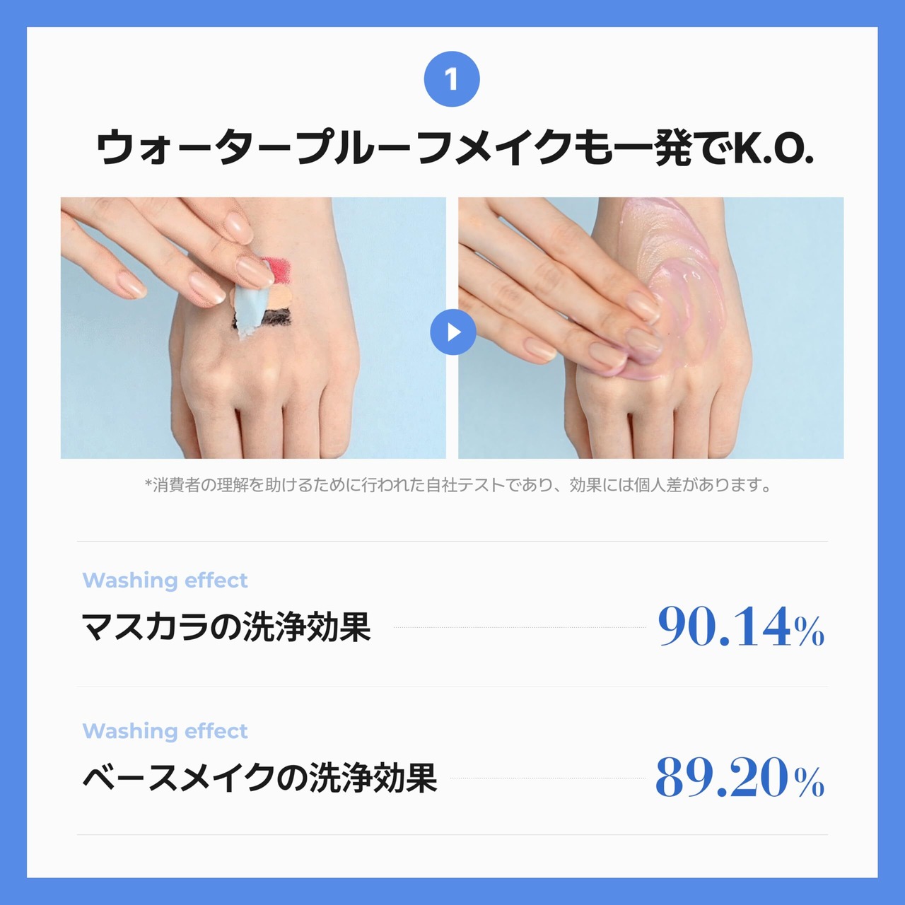 主成分では、お肌のつっぱりを防止して保護膜を形成するベタインアミノ酸1,000ppm 皮脂や角質をすっきりとケアするAHA,ナチュラルBHA(ヒメコウジ葉エキス)皮脂ケアをする3種の植物性オイル(ホホバ種子油、ブドウ種子油、ヒマワリ種子油)配合で、1度ですっきりと落とせるさっぱりした使用感ながらも、乾燥しないバランスの取れた配合になっています。