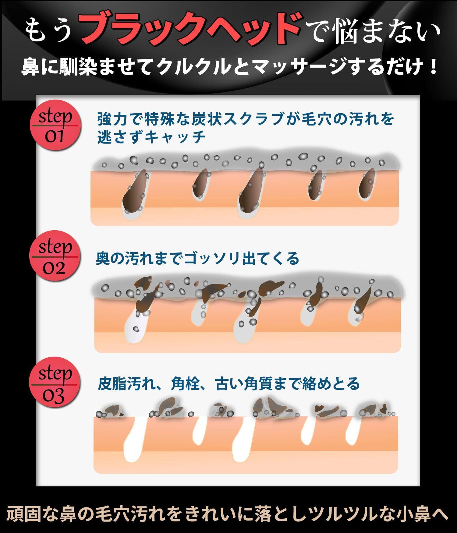 鼻 毛穴 メンズ 炭 洗浄 ブラックヘッド 黒ずみ 角栓 パック 角質取り いちご鼻 ピーリング ゴマージュ ざらつき ごっそり ピュアメデル ディープクレンジングジェル