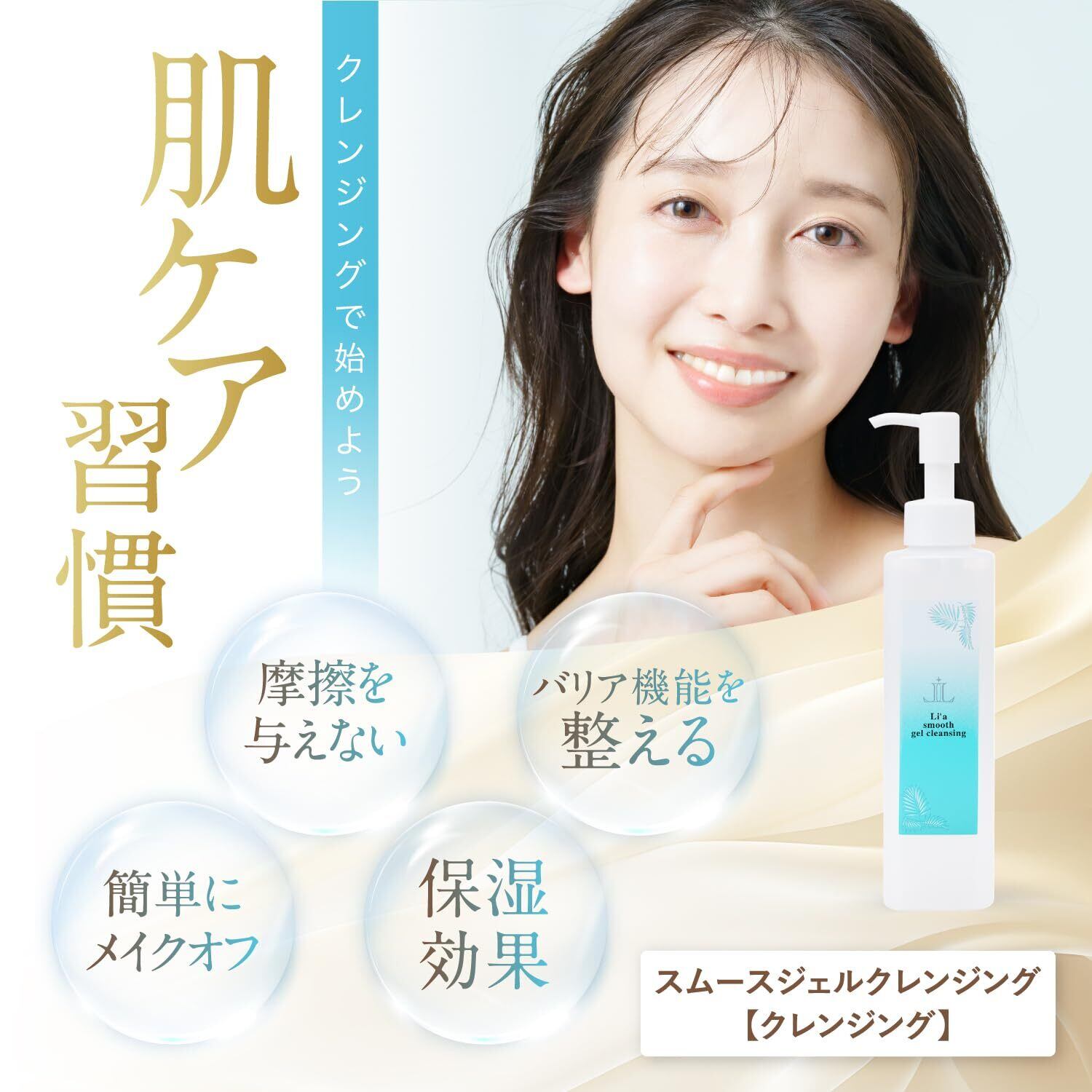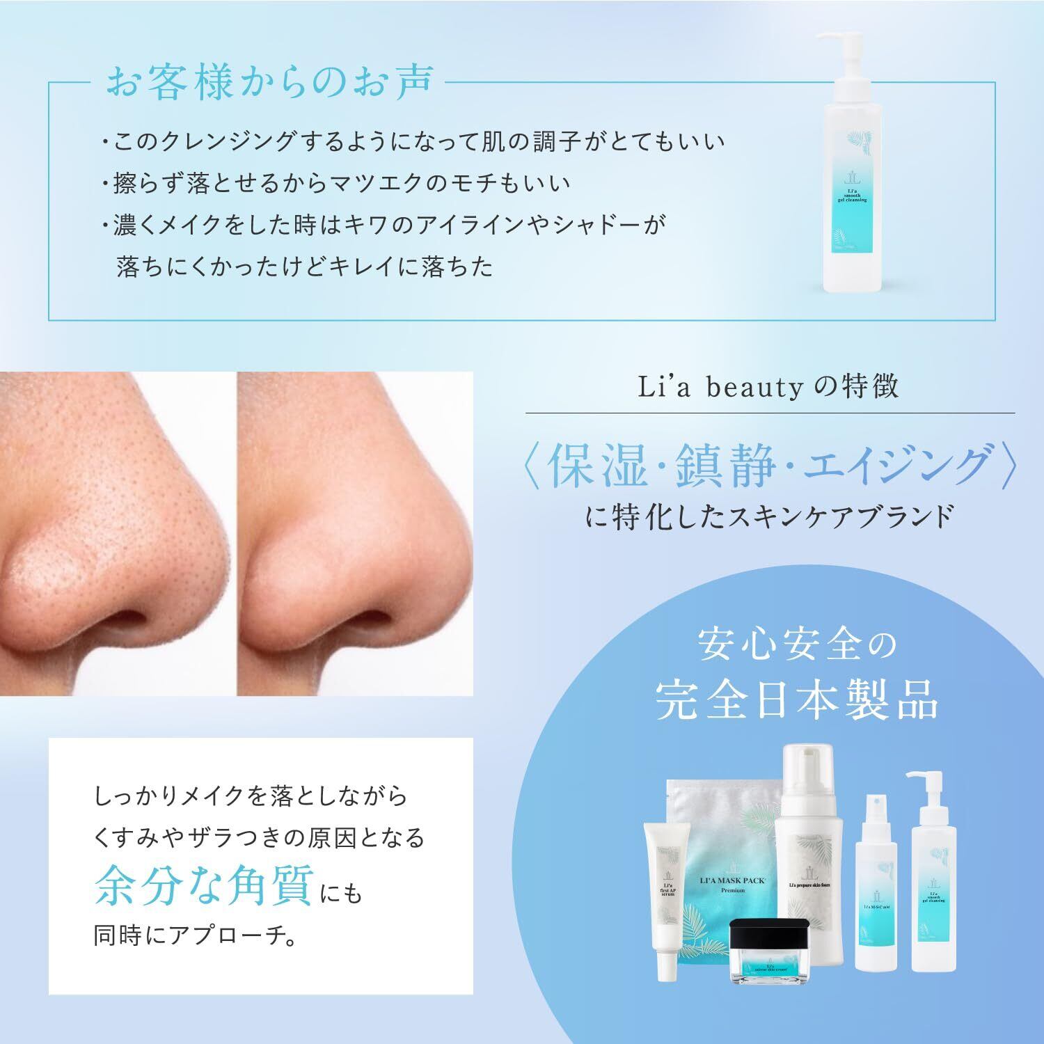 Li'a beauty スムースジェルクレンジング メイク落とし マツエクOK 低刺激 毛穴 汚れ 角質 乾燥 アラントイン 褐藻エキス オイルフリー 無香料 200g