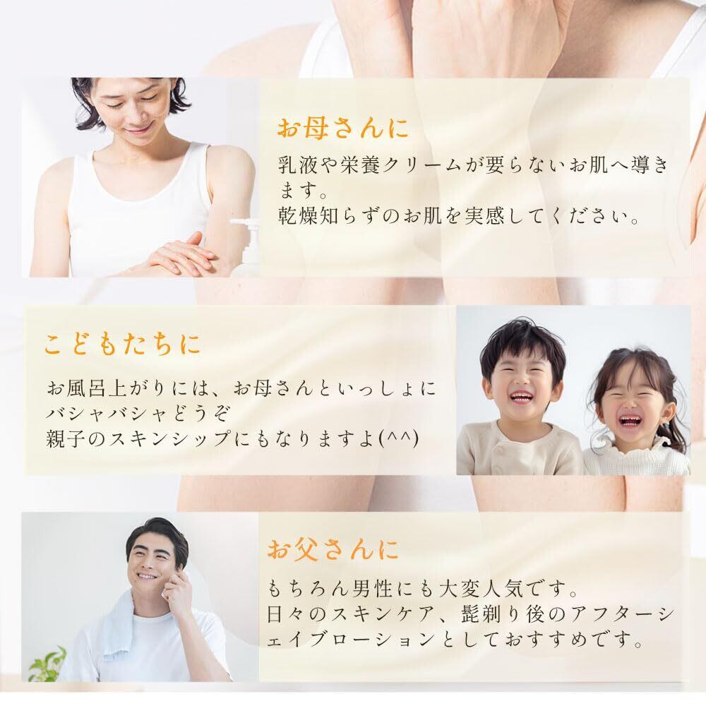 「花梨の化粧水」はフェイスローションだけでなくボディーローションとしても大活躍です。お風呂上りにたっぷりバシャバシャ全身にお使いください。
