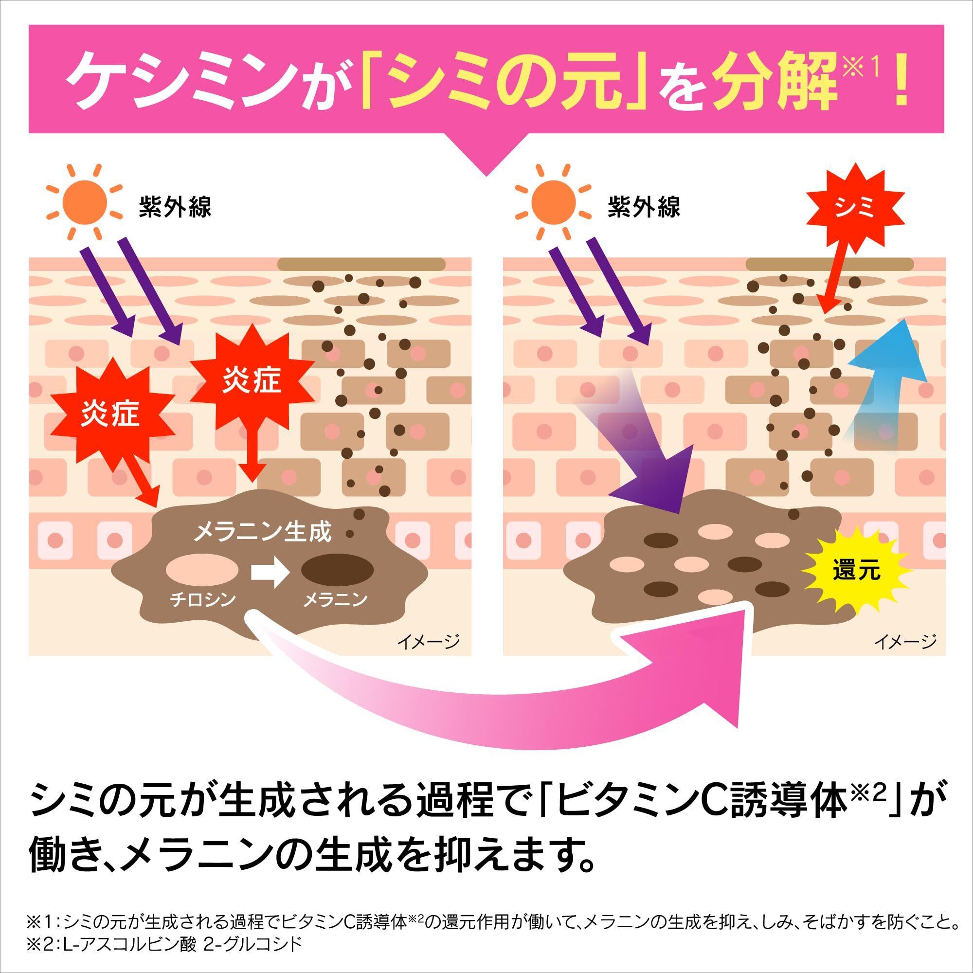 ビタミンC誘導体配合で、角質層まで行き渡り、シミの原因であるメラニンの生成を抑えます