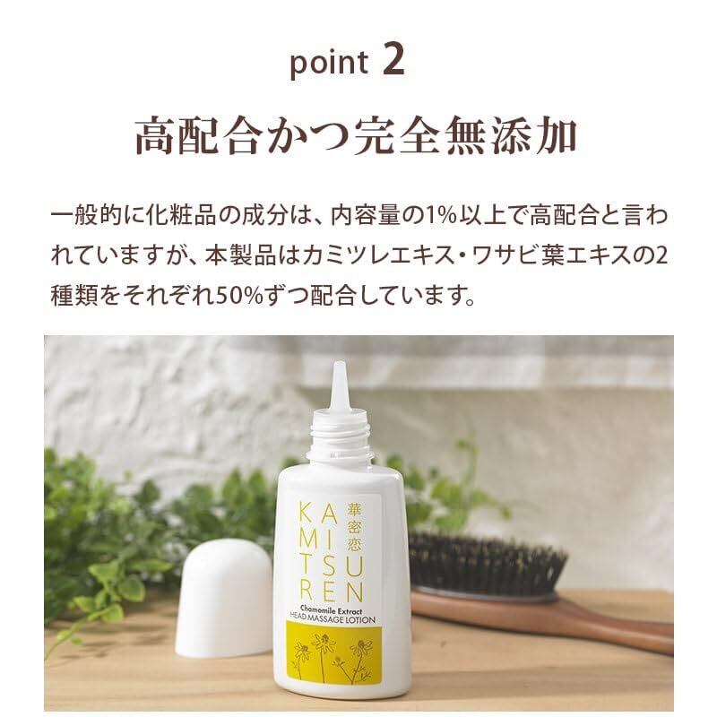 カミツレエキスとわさび葉エキス100%の頭皮用ローションです。