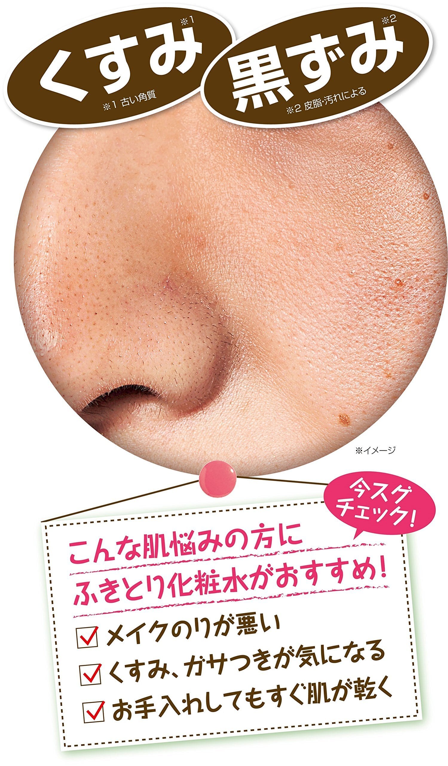 【洗い流し不要のふきとり化粧水】洗浄剤・界面活性剤を含んでいないので、普段の化粧水としてもお使いいただけます。ハトムギ・ドクダミエキスを配合で、肌荒れケアやお顔、黒ずみが気になるひじ、ひざにもおすすめです。