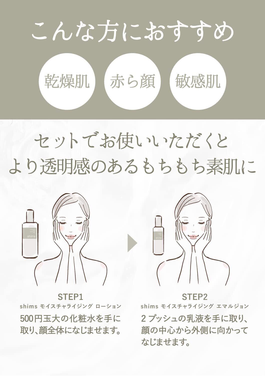 shims (シムス) 化粧水+乳液セット 高保湿化粧水 高保湿乳液 乾燥肌 敏感肌 赤ら顔 肌荒れ CICA ヒト型セラミド シカ スキンケア 化粧水200mL 乳液100mL