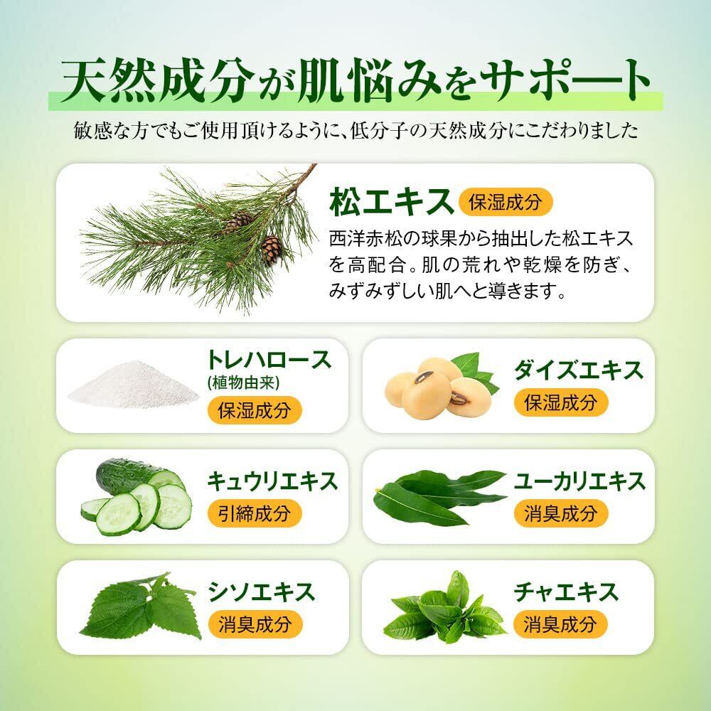 ●内容量/200mL(目安は手や顔に1日2回使用して1ヶ月分です。 個人差がございます。) ●原材料/水、グリセリン、BG、トレハロース、ソルビトール、セイヨウアカマツ球果エキス、シソ葉エキス、キュウリ果実エキス、チャ葉エキス、ダイズ種子エキス、ユーカリ葉エキス、アラントイン、クエン酸、フェノキシエタノール
