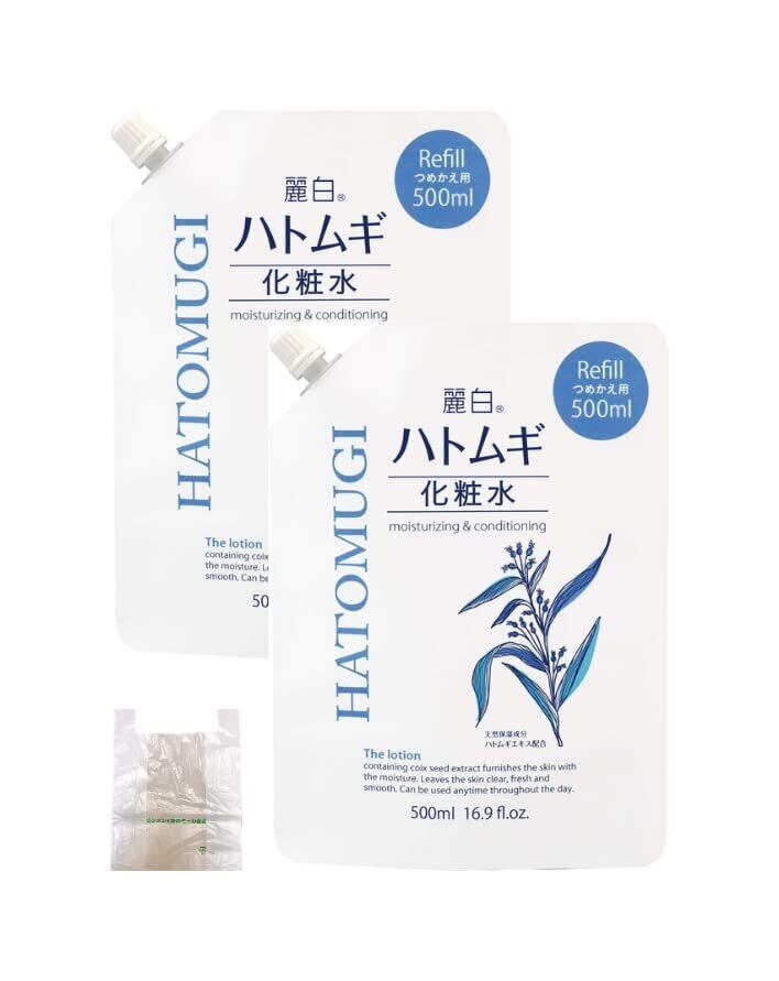 【まとめ買い】 麗白 ハトムギ化粧水 詰替 500ml ×2個 オリジナルレジ袋