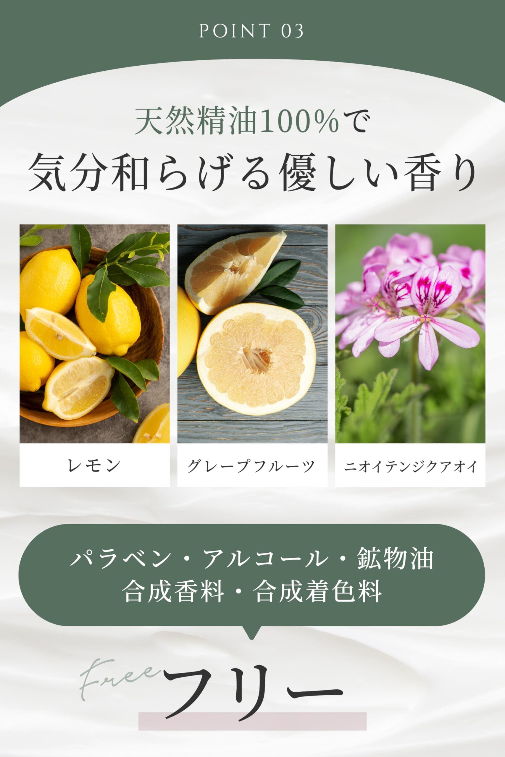 パラペン・アルコール・合成香料・合成着色料・鉱物油フリー