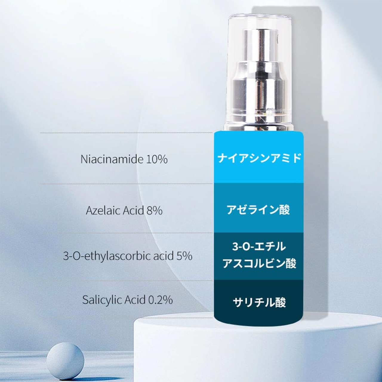 【天然由来の優しい処方】穀物由来のアゼライン酸を中心に、敏感肌・デリケート肌にも使いやすい処方を実現。たっぷり使える50ml容量で、毎日のスキンケアに安心してお使いいただけます。