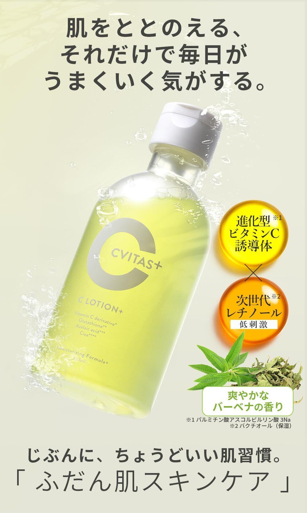 【高保湿化粧水】 CVITASプラス ビタミンC アゼライン酸 レチノール C LOTION+ ローション 化粧水 (約2ヶ月分) 300ml 保湿 ハリ うるおい 柑橘 香り シービタス CVITAS +