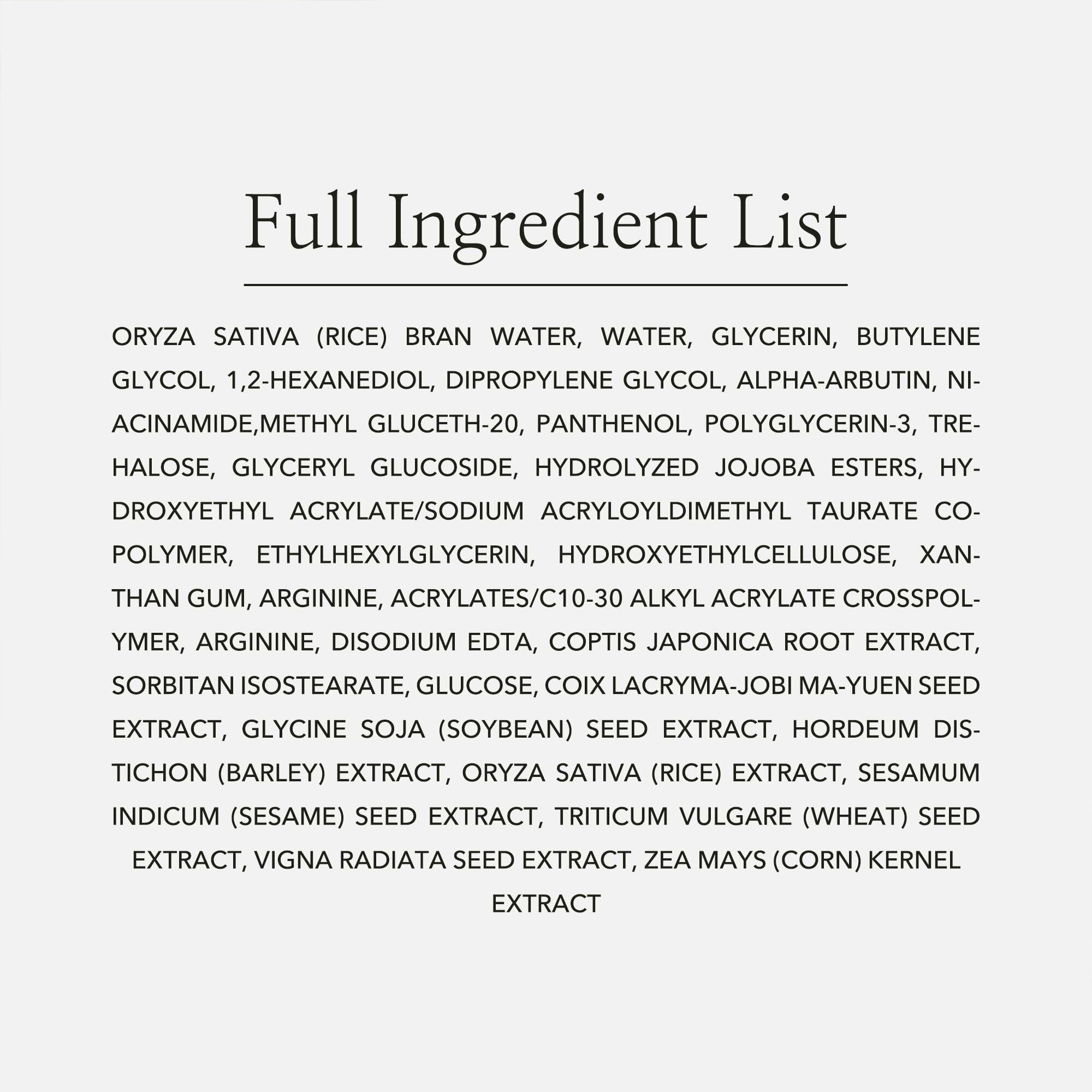 精製水の代わりに米ぬか水を使用してビタミンBやミネラルなどの様々な成分が含まれている。