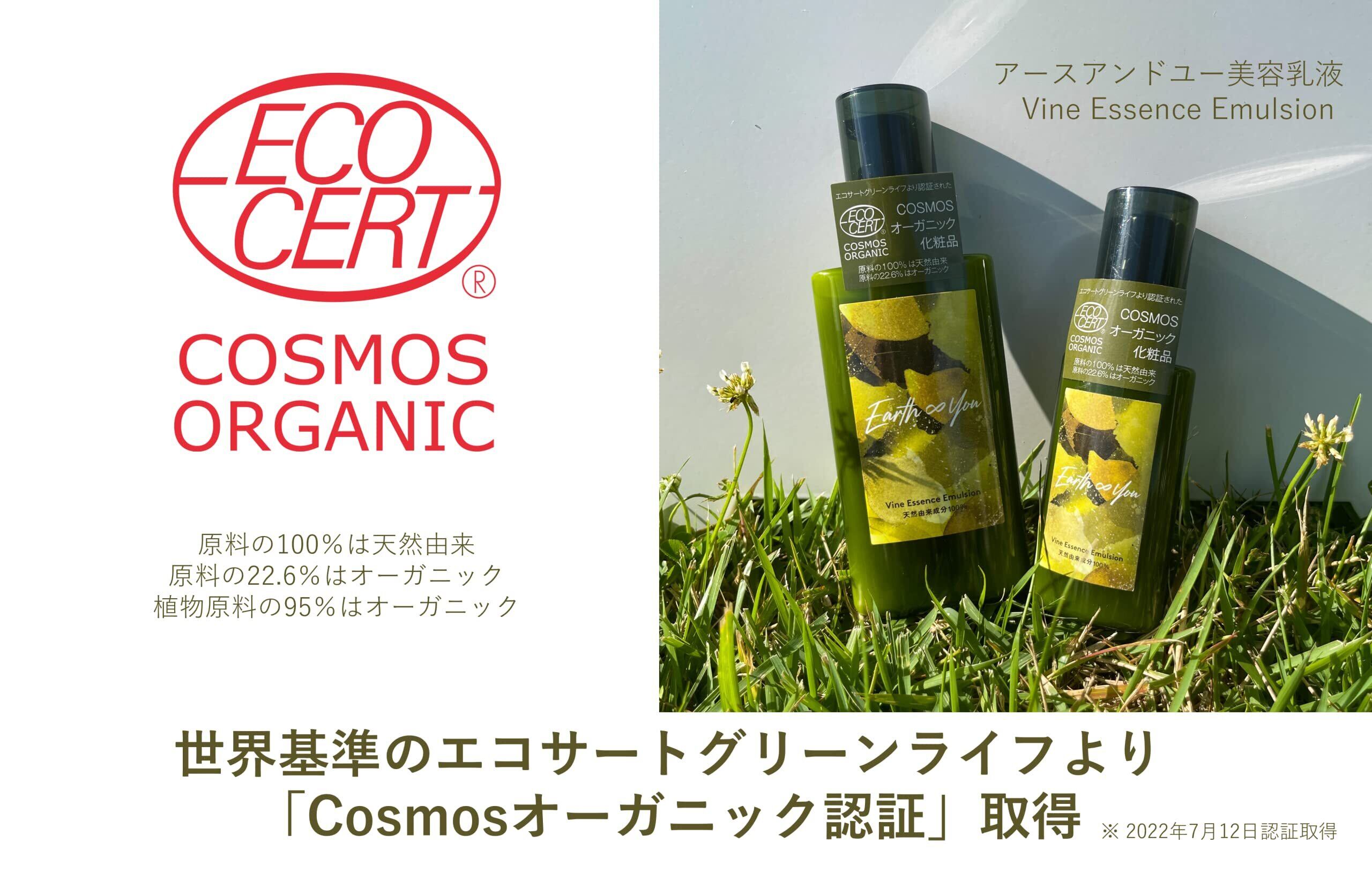 [アースアンドユー] 美容乳液 オーガニック認証 エイジングケア 高濃度 レスベラトロール 天然由来100% 無添加 敏感肌 目元 シワ 紫外線ケア 肌キメ シェアコスメ メンズ にも 約4か月分 100ml