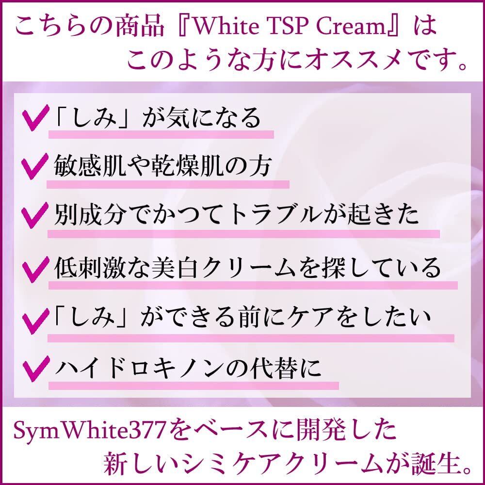 【White TSP Cream】ハイドロキノン2100倍のアプローチ力、『SymWhite377』を推奨配合濃度の最大値『0.5%』高配合。『 シミ / くすみ / 黒ずみ 』を集中ケアするナイトクリーム