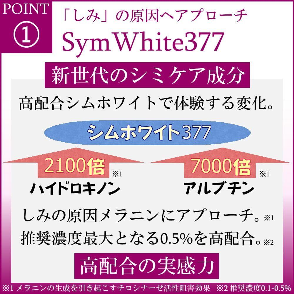 有効成分 シムホワイト377、安定型ハイドロキノン、アルブチン, ビタミンC ( APPS ), CICA ( シカ )