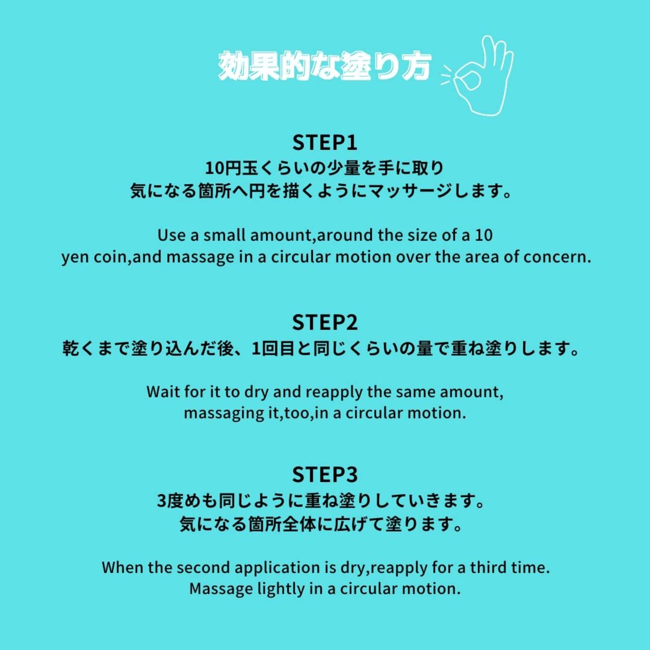 ポイントは3度の重ね塗り。5円玉大を気になるところに塗り広げ、乾いたら2回目を塗り、乾いたら3回目と重ね塗りすることをオススメします。