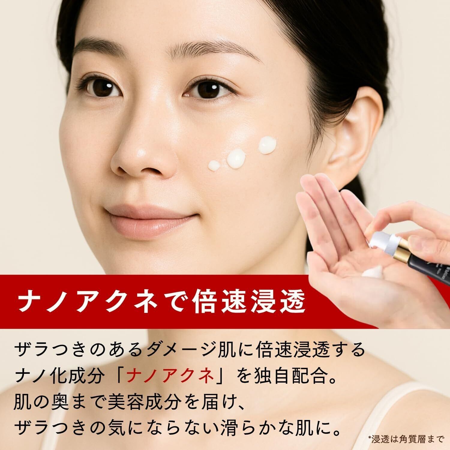 【ザラつきダメージ肌に高浸透※】ローヤルゼリー酸・油溶性ビタミンC等をナノ化した独自成分(ナノアクネ)を配合。肌の奥まで美容成分を届け、ザラつきの気にならない滑らかな肌に。※浸透は角質層まで