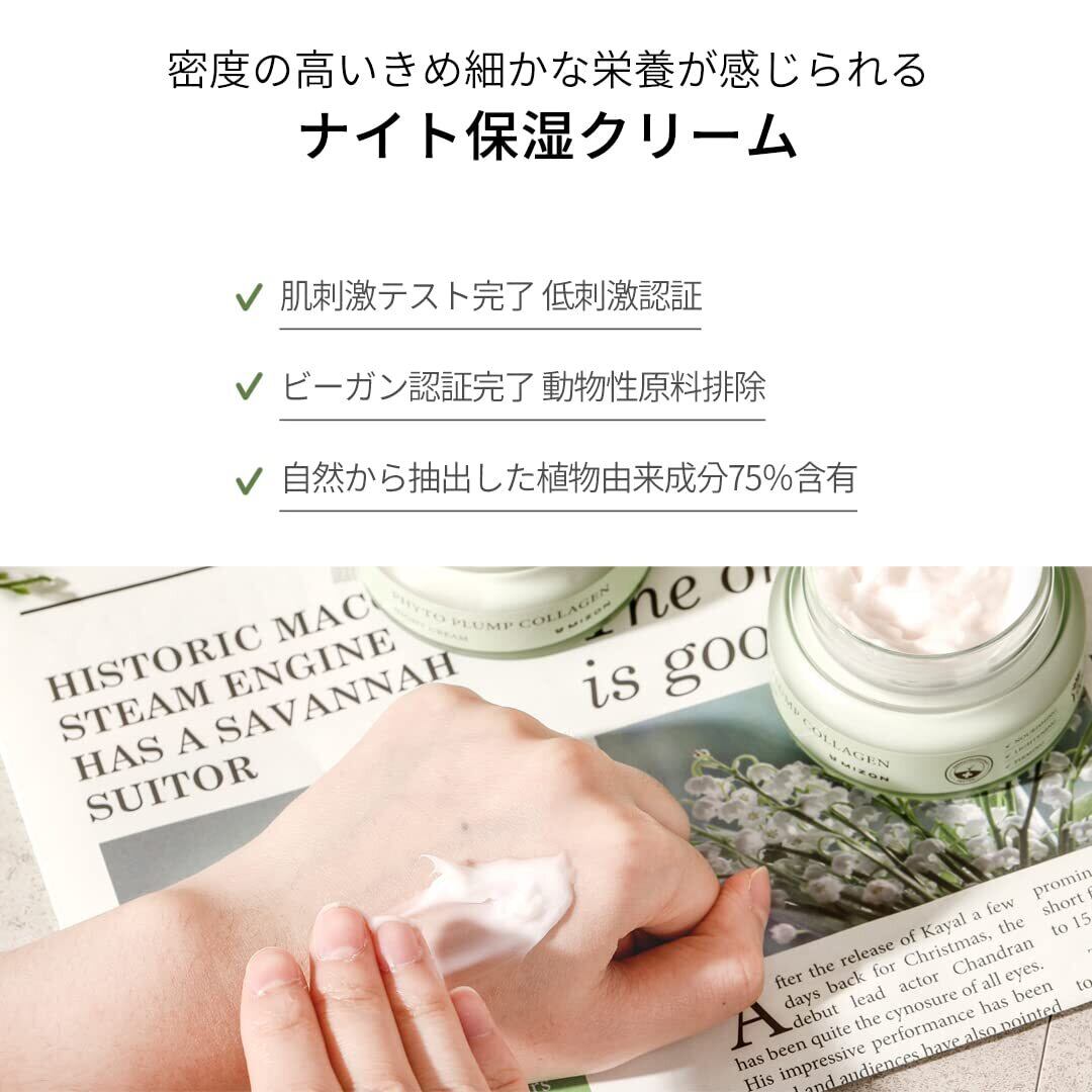 MIZON ファイトプランプコラーゲンナイトクリーム50ml, 75% 植物由来成分, 水分補給, 密度のあるもちしたテクスチャー, 丈夫な肌バリア