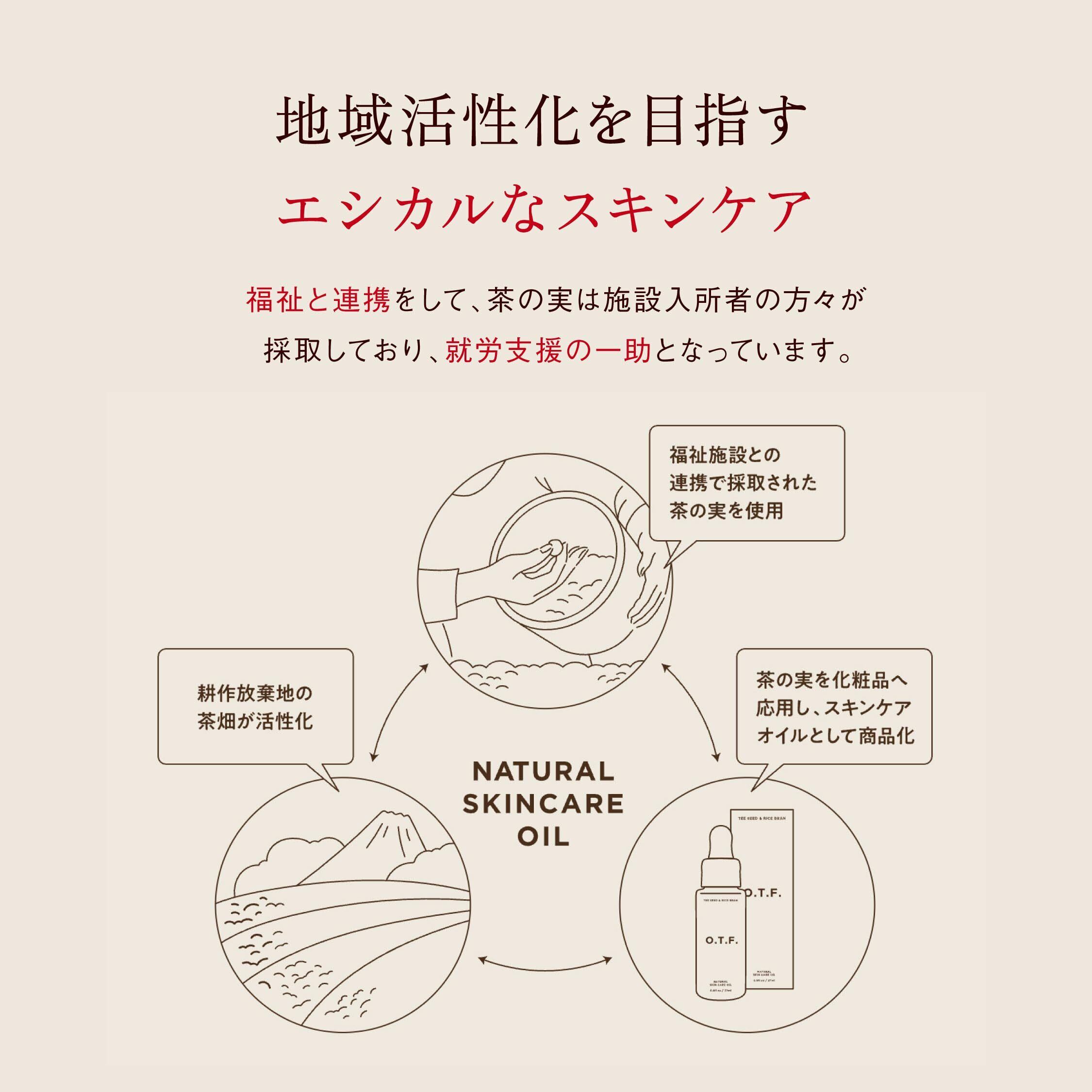 O.T.F ナチュラルスキンケアオイル 27ml 美容オイル (顔/ボディ/髪) 茶の実油 コメヌカ油 (乾燥肌/敏感肌) 保湿 フェイスオイル (働く女性のご褒美に/プレゼント)